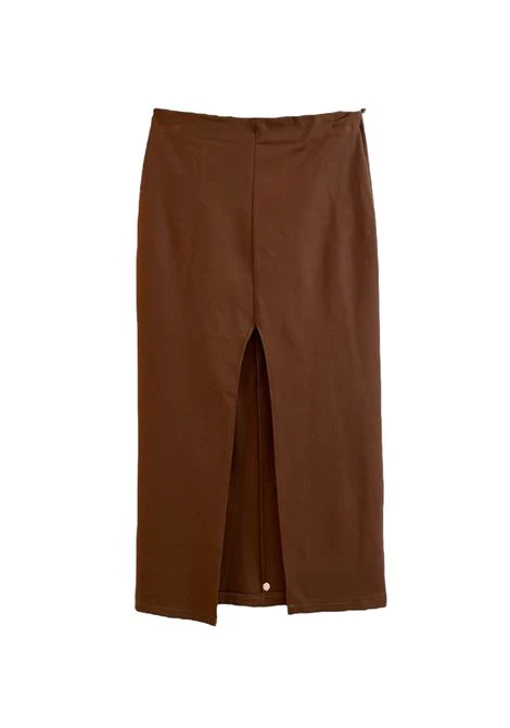 Gonna longuette in tessuto tecnico elasticizzato. Elastico interno. Vestibilit� aderente. Spacco profondo sul davanti.