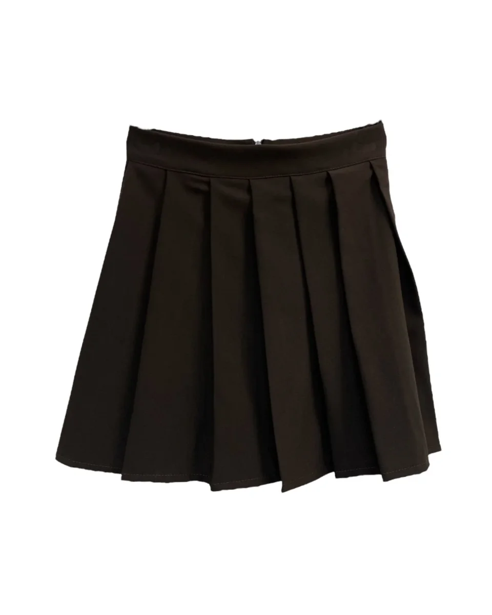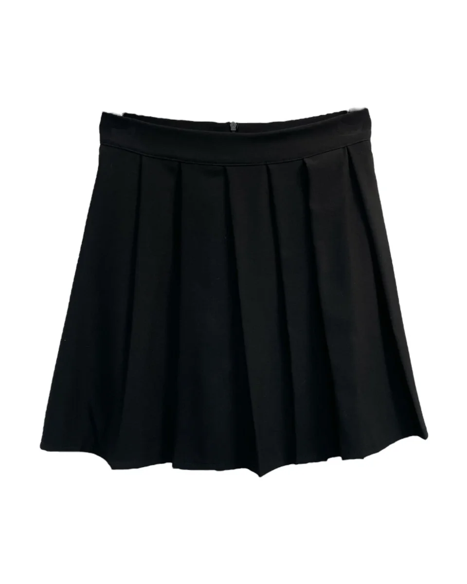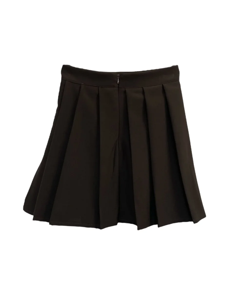 Gonna corta in tessuto tecnico. Vita con cinturino fisso, chiusura con zip posteriore. Motivo a pieghe. Vestibilità regolare. Composizione tessuto 75% poliestere 21% viscosa 4% elastan.