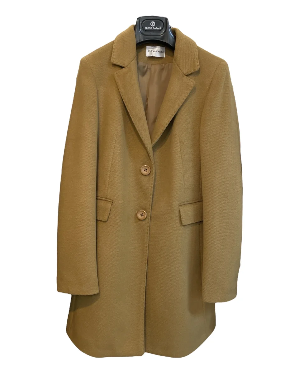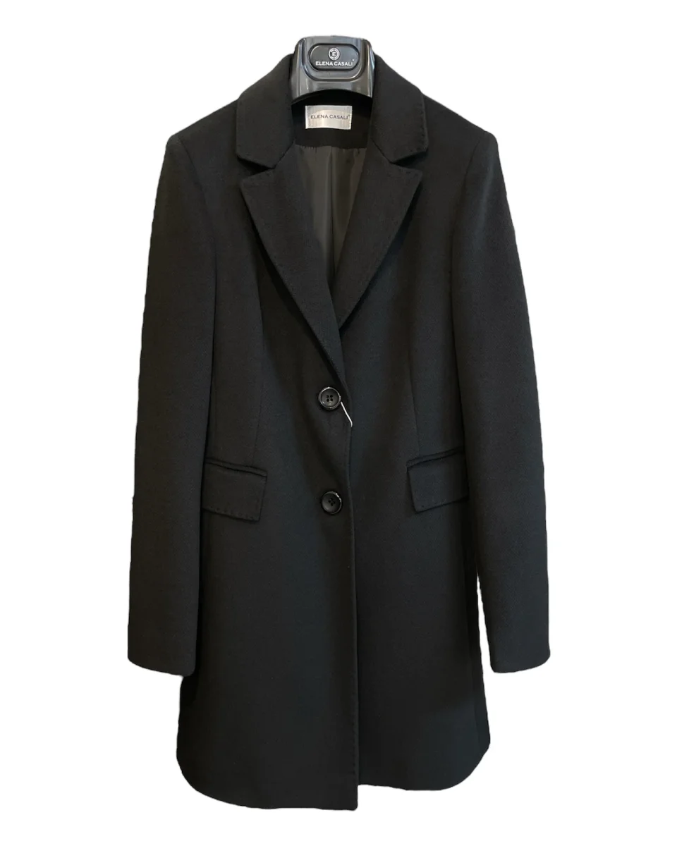 Cappotto corto modello baronetto. Collo con revers regolari, chiusura con bottoni in tinta. Capo foderato, vestibilità sagomata. Composizione tessuto 90% poliestere 10% viscosa.
