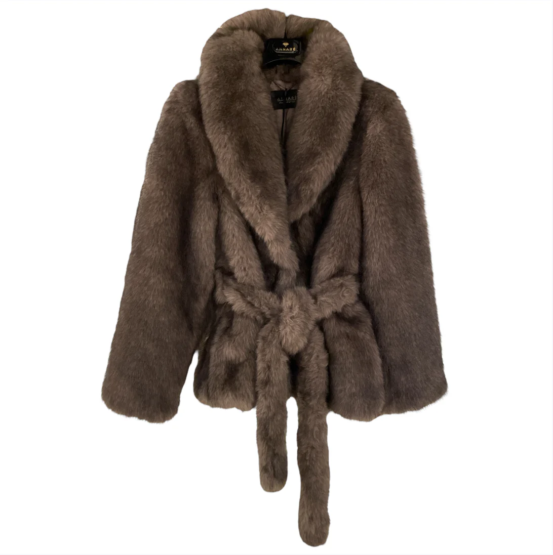 Eco-pelliccia donna oversize effetto pelo lungo. Ampio collo, chiusura con bottoni automatici interni, cintura in vita, tasche laterali. Lunghezza in vita, fodera in tessuto. Veste ampia.
