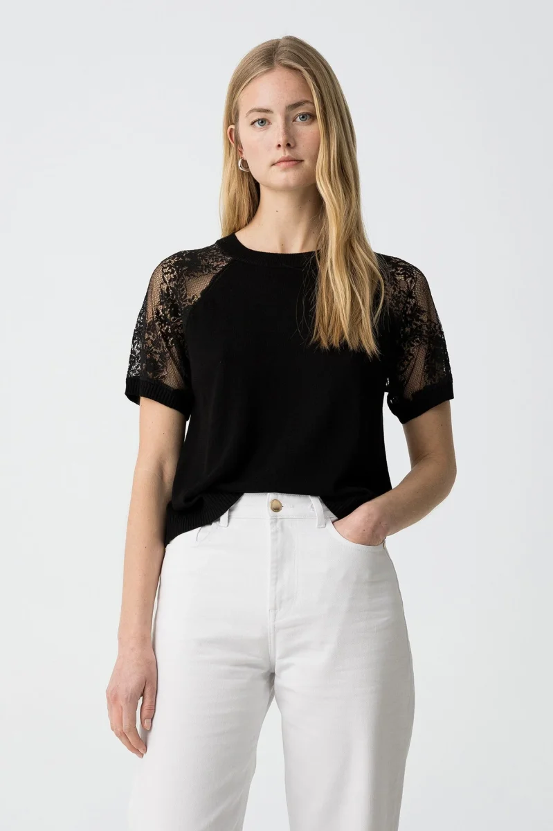 MAGLIA MEZZA MANICA PROFILI IN PIZZO