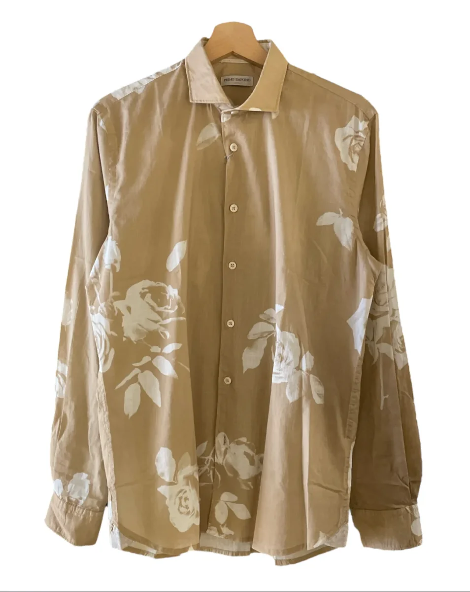Camicia comfort fit in tessuto 100% cotone stampato. Colletto piccolo, chiusura centrale con bottoni madreperlati. Maniche lunghe, vestibilità comoda. Stampa maxi fiori stilizzati.