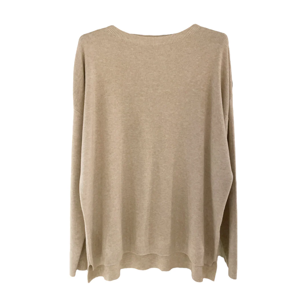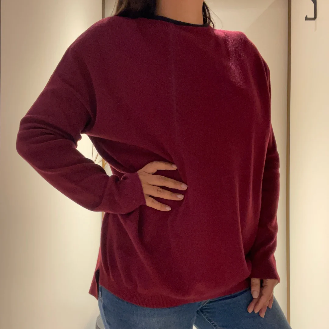 Maglia donna oversize in tessuto morbido misto viscosa. Girocollo ampio, spalla raglan, corpo ampio, spacchetti laterali. Vestibilità comoda. Taglia unica, veste fino alla L. Composizione tessuto 60% viscosa, 30% poliammide, 10% elastan.