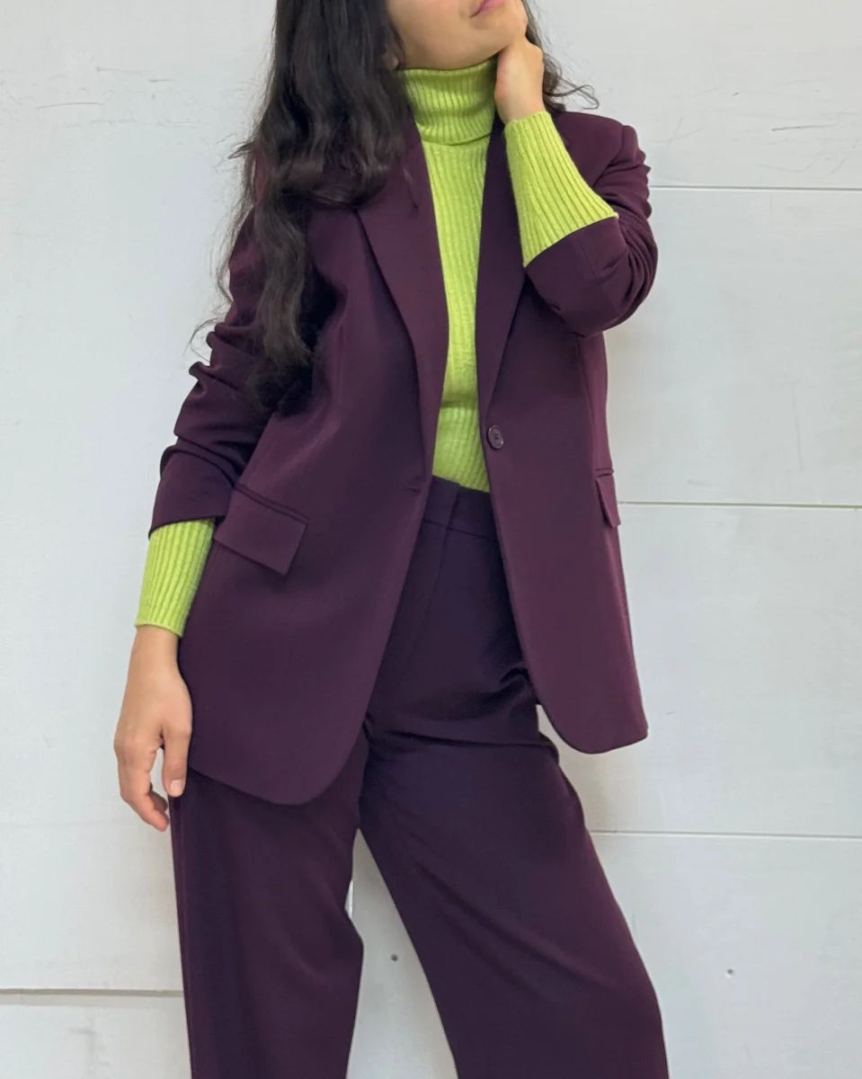 Giacca dritta in tessuto tecnico mano lana. Collo con revers regolari, chiusura con bottone centrale in tinta. Fodera in tessuto lucido rasato in tinta. Vestibilità dritta. Composizione tessuto 78% poliestere 18% rayon 4% elastan. Crea il tailleur con il pantalone abbinato.