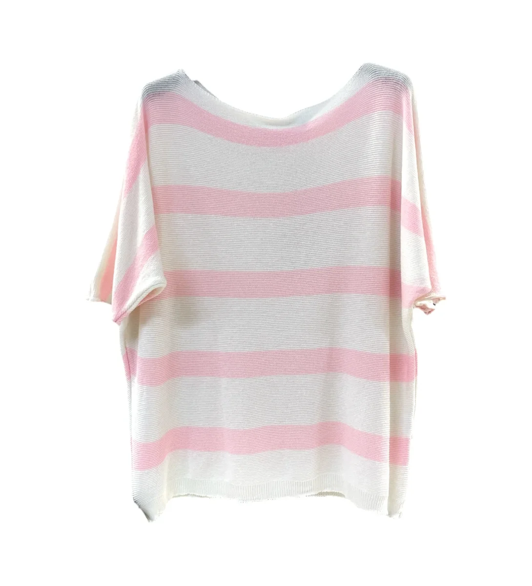 Maglia basica in tessuto elasticizzato lavorato. Scollo tondo ampio, maniche a pipistrello. Motivo a righe in colore a contrasto. Taglia unica, vestibilità comoda.
