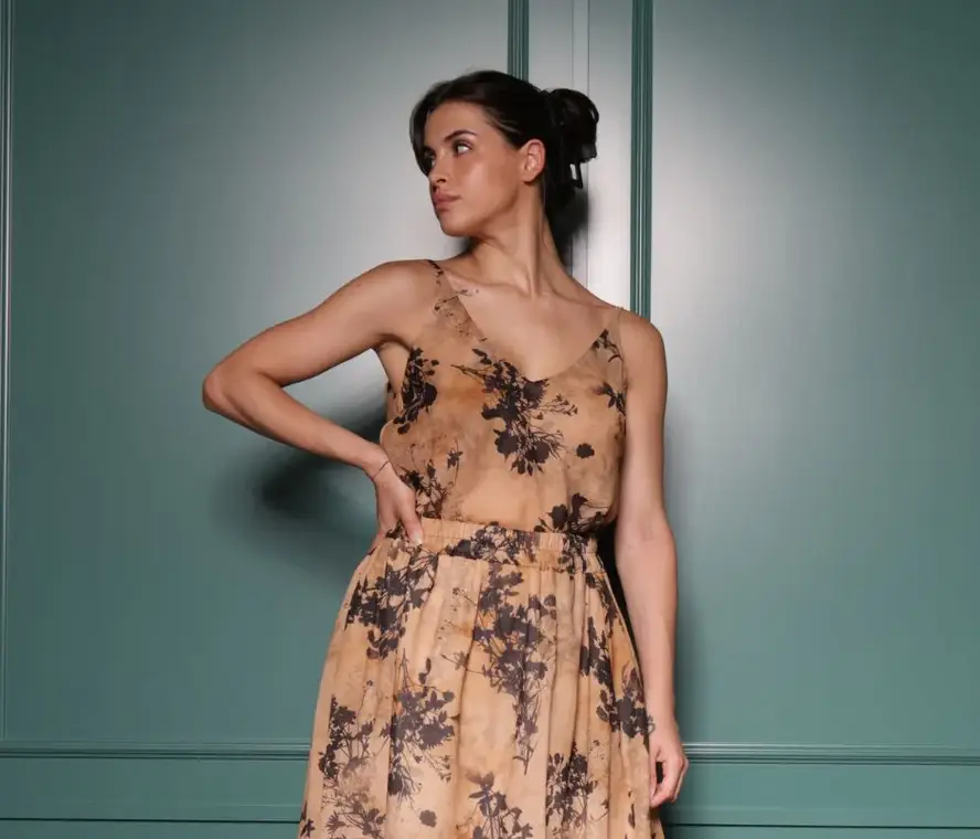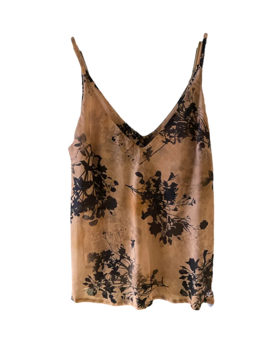 Top in tessuto leggero mussola di cotone. Bretelle sottili con scollo a punta, tessuto doppiato sullo scollo. Vestibilità comoda. Crea il completo con la gonna abbinata. Composizione tessuto 100% cotone.