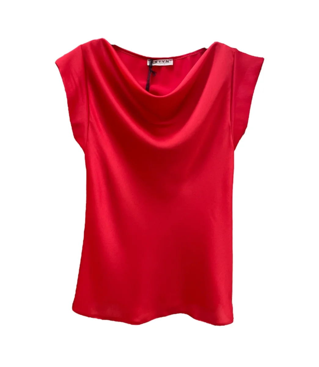 Casacca basica in tessuto rasato lucido. Scollo a cascata, maniche a giro con alette. Vestibilità morbida sui fianchi, leggermente sagomata in vita. Composizione tessuto 100% poliestere.