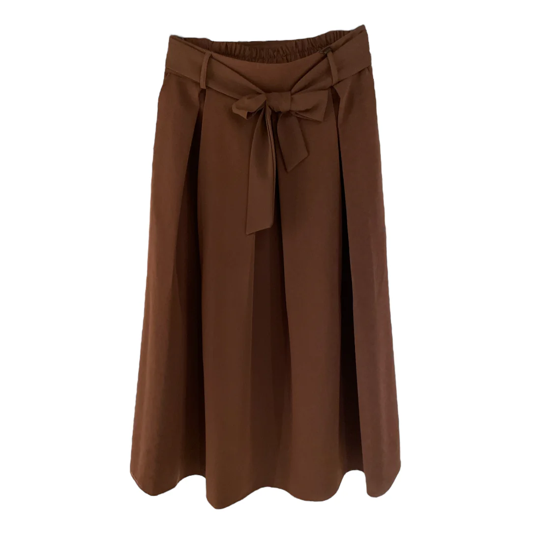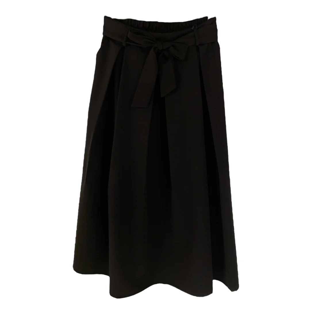Gonna lungo in tessuto tecnico misto viscosa. Vita regolare con passanti, cinturino fisso sul davanti ed elastico sulla schiena. Fusciacca in vita. Tasche laterali. Pieghe sul davanti, lunghezza alla caviglia. Veste dalla XS/S alla L. Composizione tessuto 77% poliestere 17% viscosa 6% elastan. Abbina la giacca in tessuto con fusciacca.