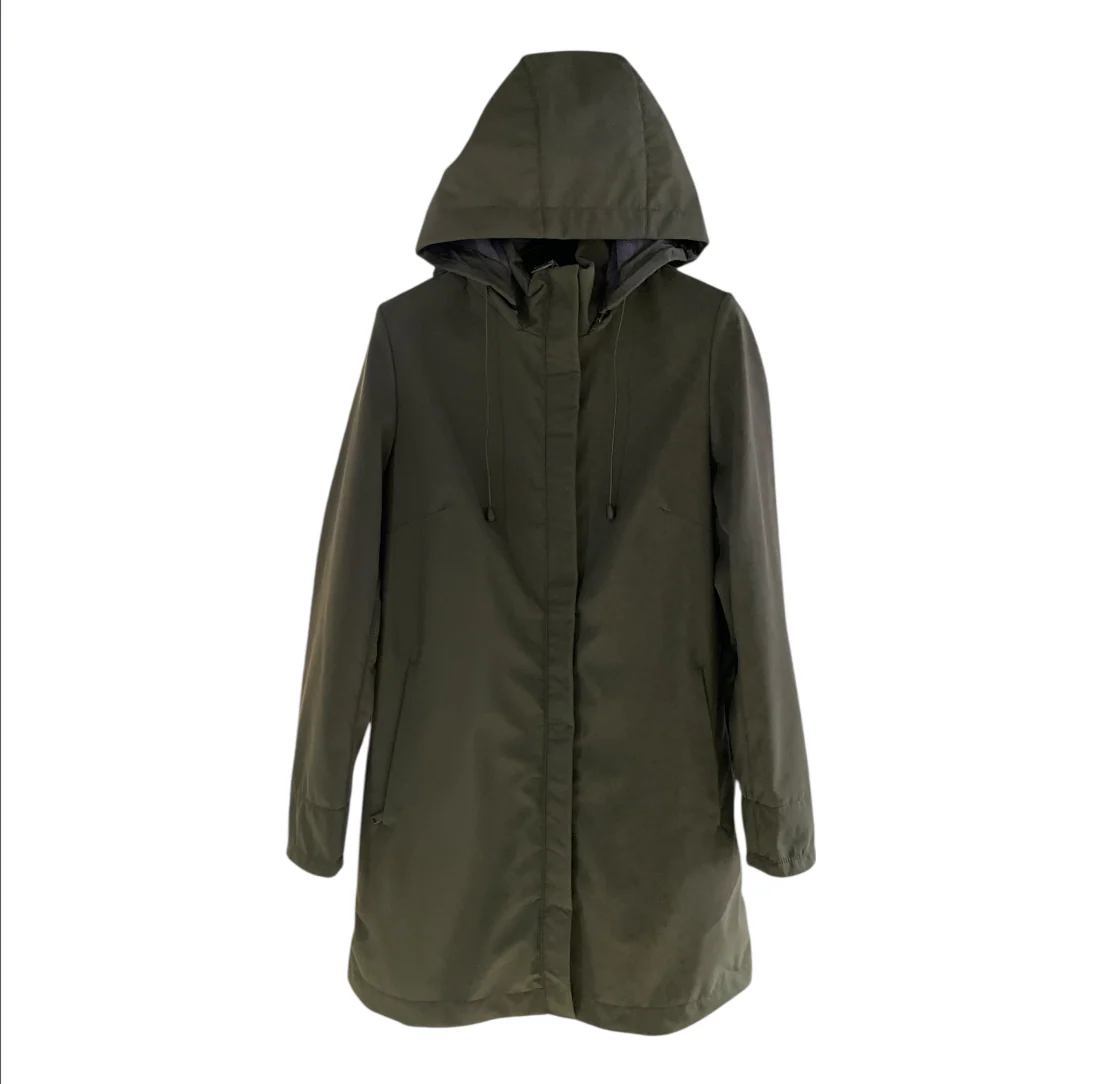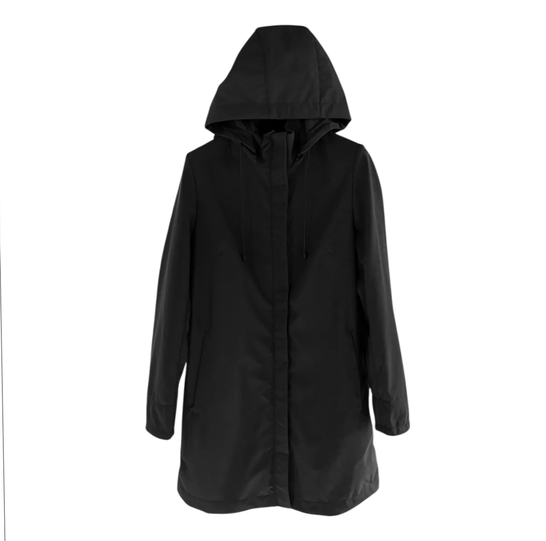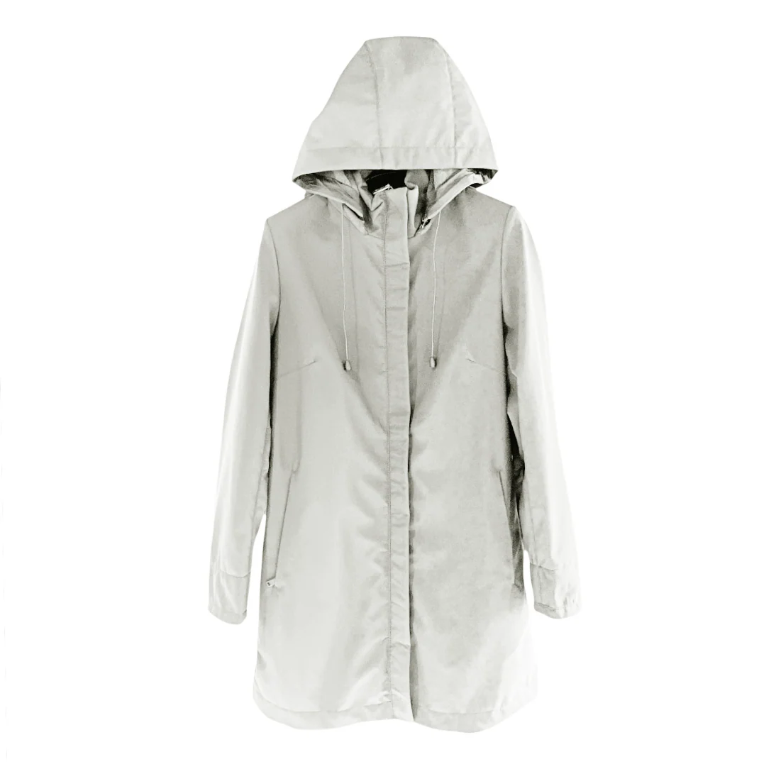 Giubbino modello parka in tessuto tecnico idro repellente. Cappuccio ampio rimovibile tramite zip, cordini in tinta per regolare l’ampiezza. Chiusura con zip centrale coperta da pattina, tasche laterali chiuse da zip. Maniche lunghe con polsini interni elasticizzati. Interno in pile. Vestibilità aderente.