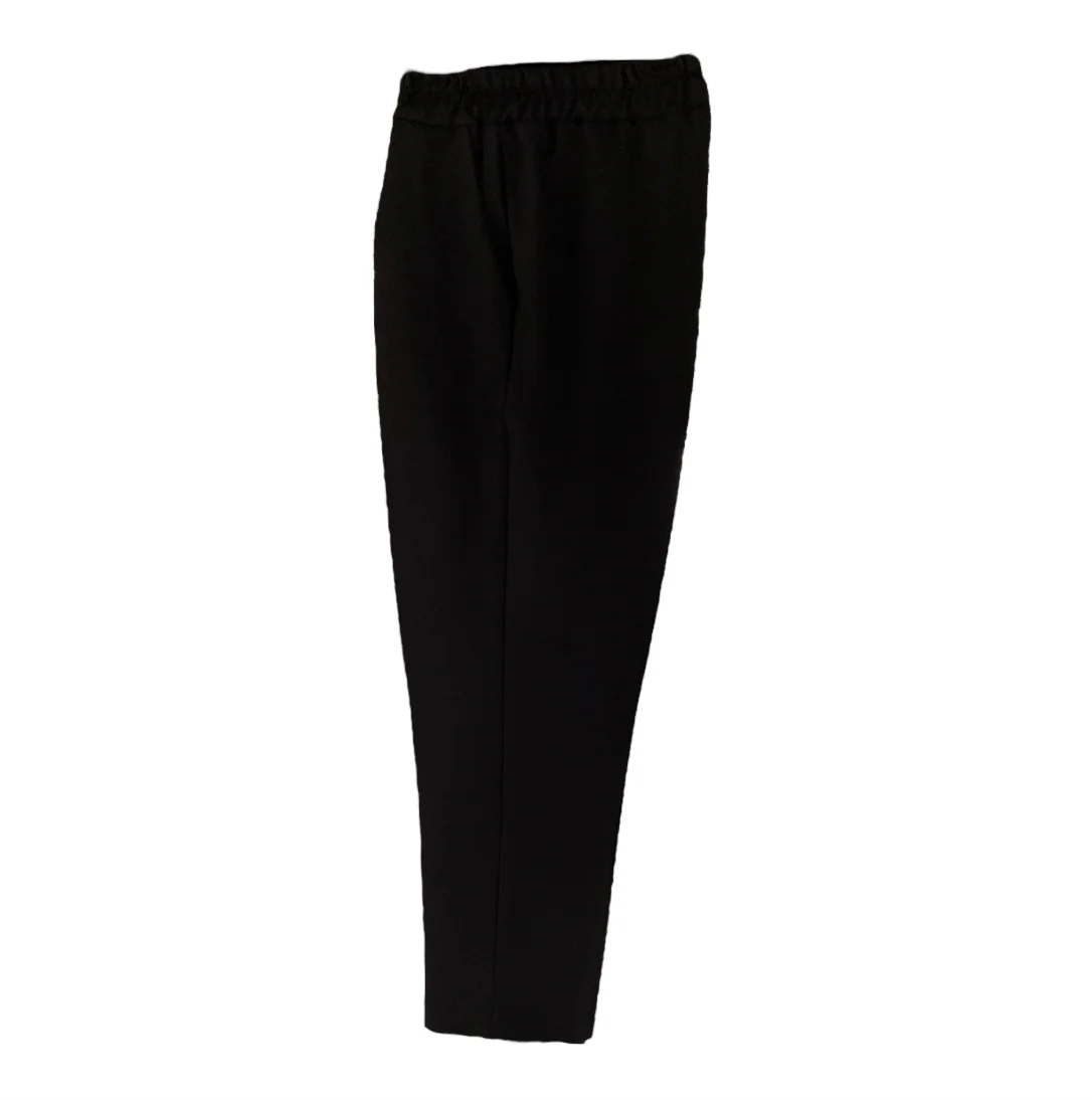 Pantalone donna a sigaretta in tessuto tecnico. Vita regolare con cinturino fisso sul davanti ed elastico sulla schiena, tasche laterali. Gamba slim e fondo stretto. Veste dalla Xs alla L. Composizione tessuto 96% poliestere 4% elastan. Abbina la giacca basic o con dettagli animalier, entrambe oversize.