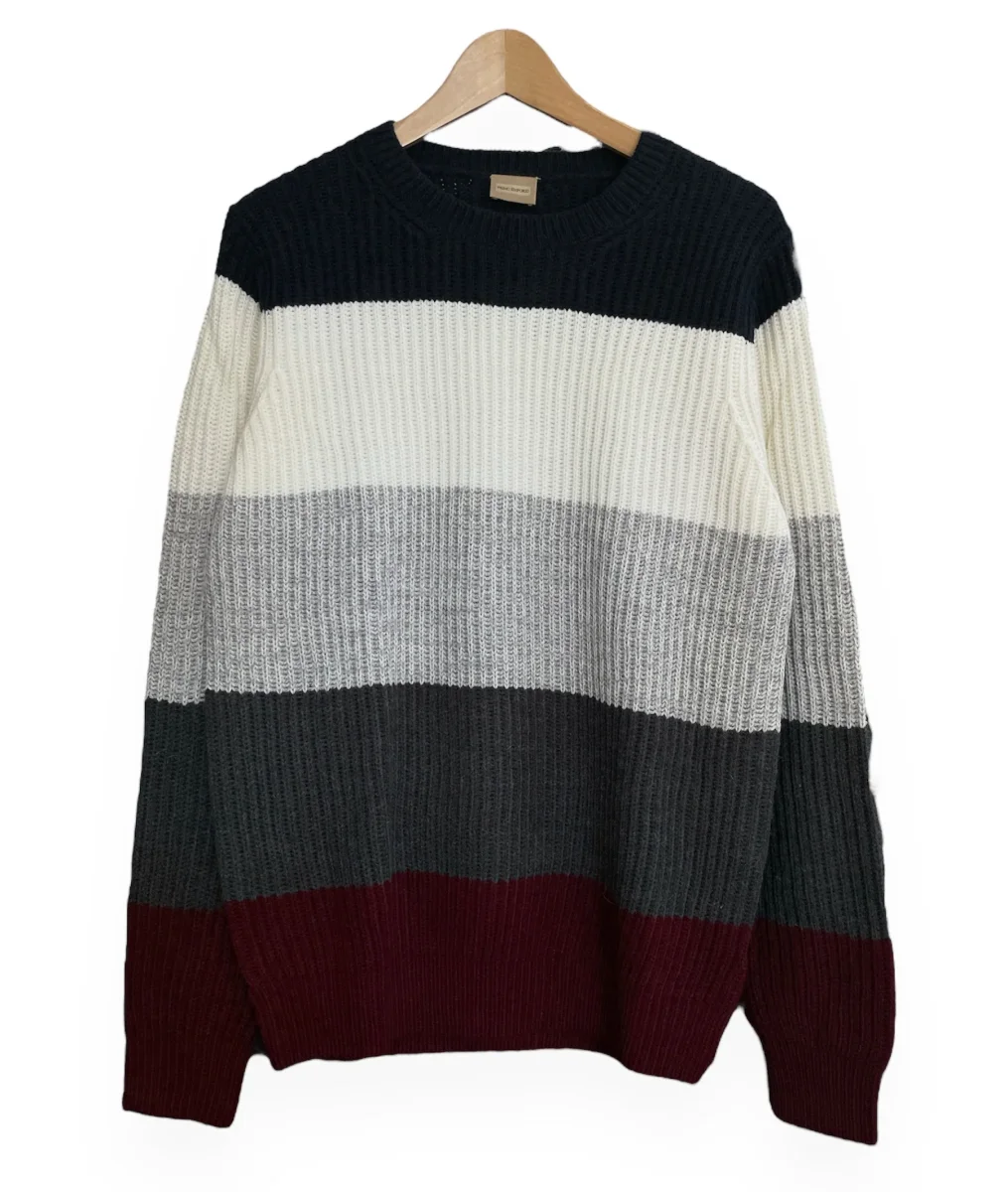 Maglia vestibilit over in tessuto lavorato a maglia grossa. Motivo a fasce multicolor, girocollo polsini e fondo rifiniti a coste. Composizione tessuto 100% acrilico.
