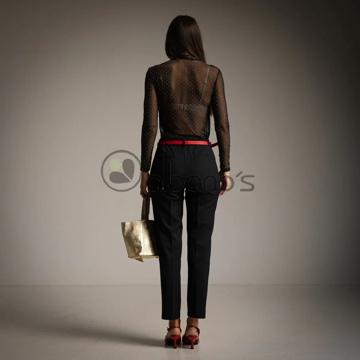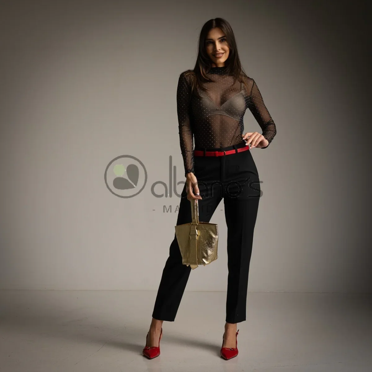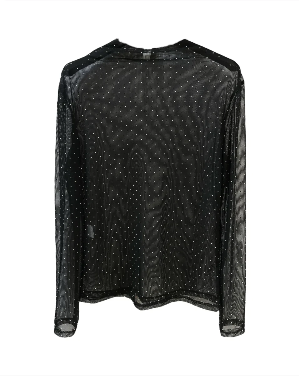 Maglia aderente in tessuto garzina con dettagli micro pois glitter. Mezzo collo morbido, maniche lunghe. Vestibilità aderente.