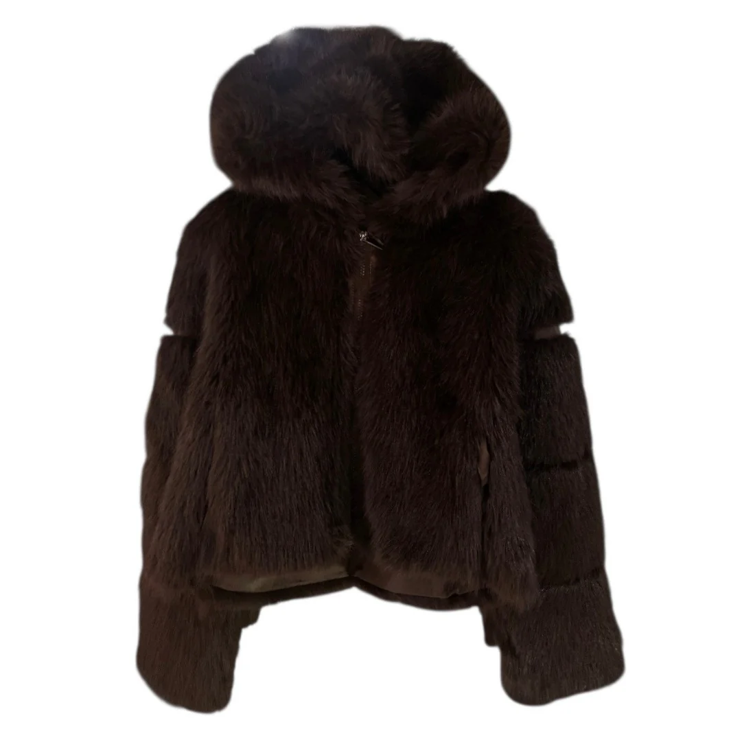 Ecopelliccia crop fit con inserti in ecopelle sulle maniche. Ampio cappuccio, chiusura con zip. Vestibilità corta.