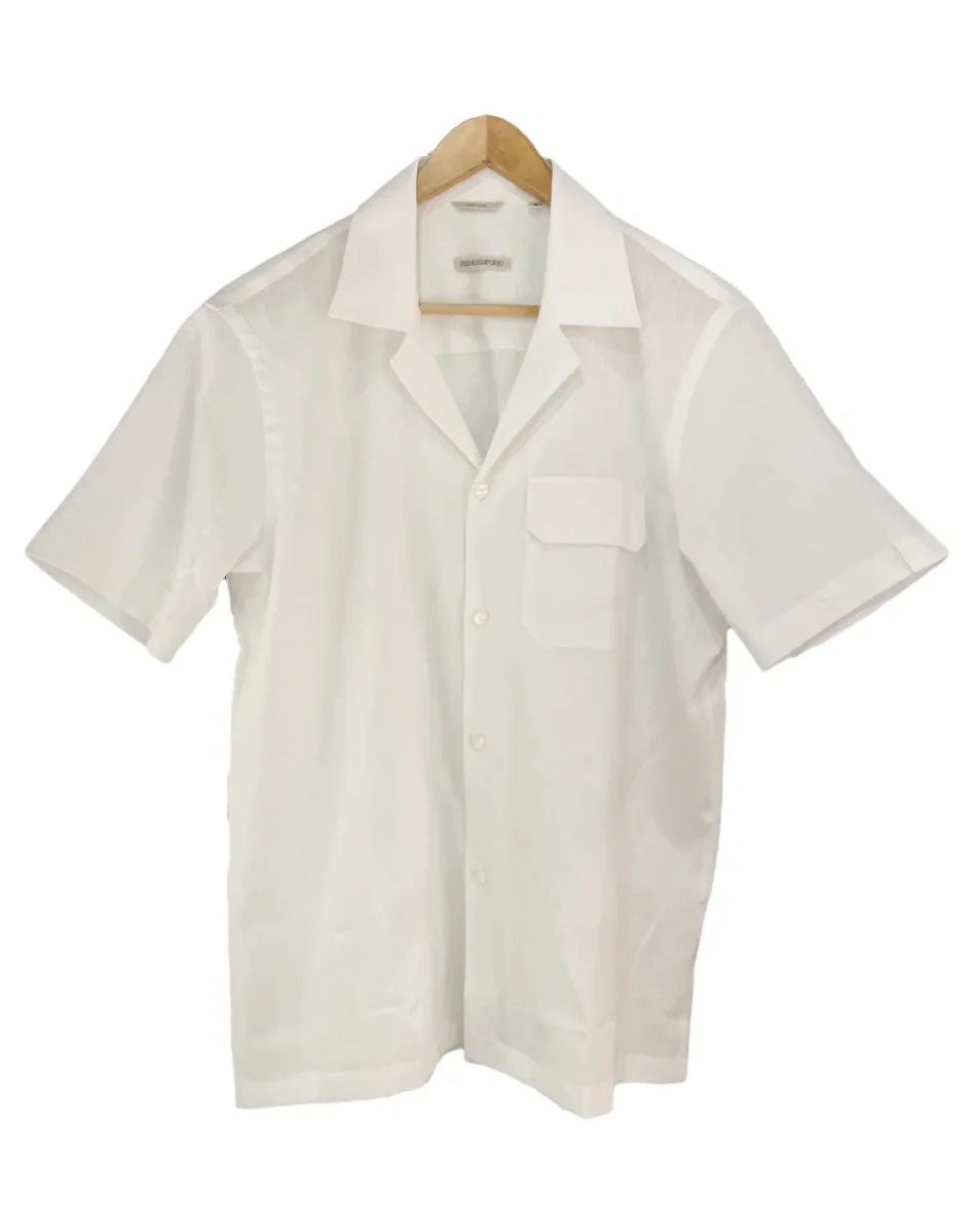 Camicia comfort fit in tessuto misto lino/cotone. Collo camicia, taschino sul petto, maniche corte. Vestibilità comoda. Lunghezza regolare. Composizione tessuto 55% lino 45% cotone.