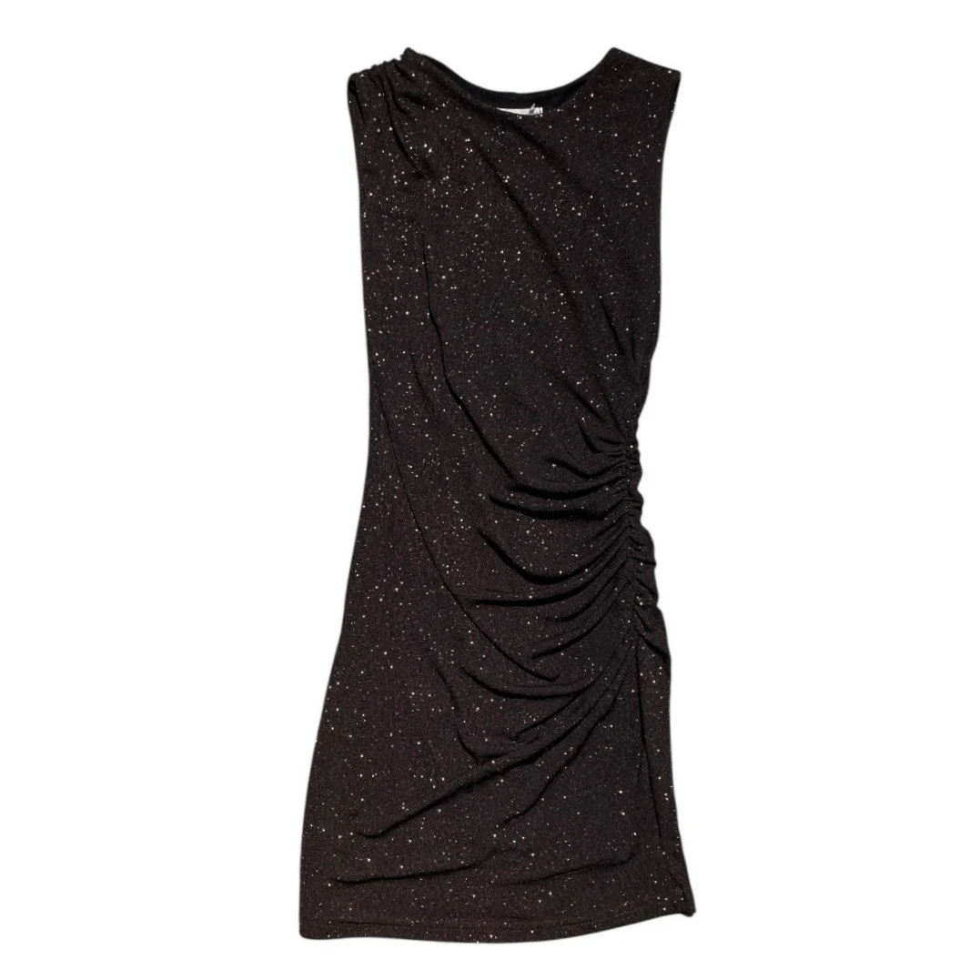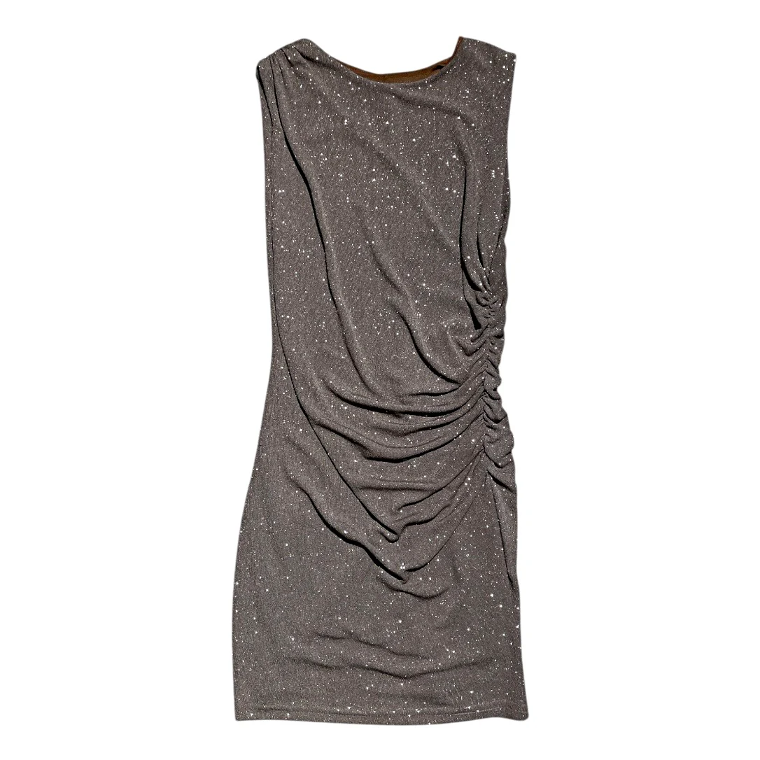 Vestito aderente in tessuto jersey elasticizzato glitterato. Girocollo regolare, drappeggio laterale. Vestibilità aderente.
