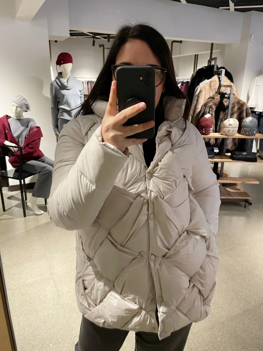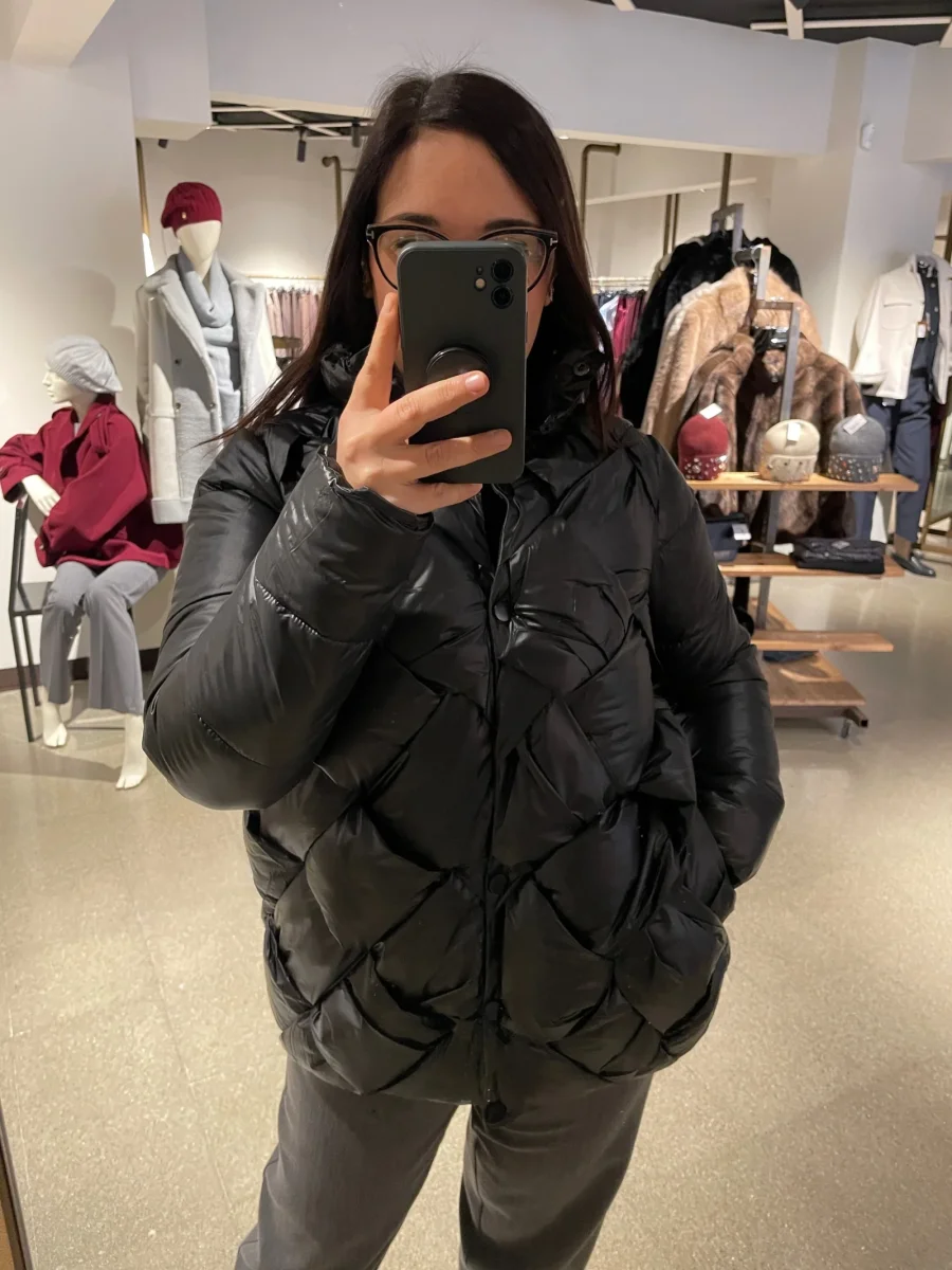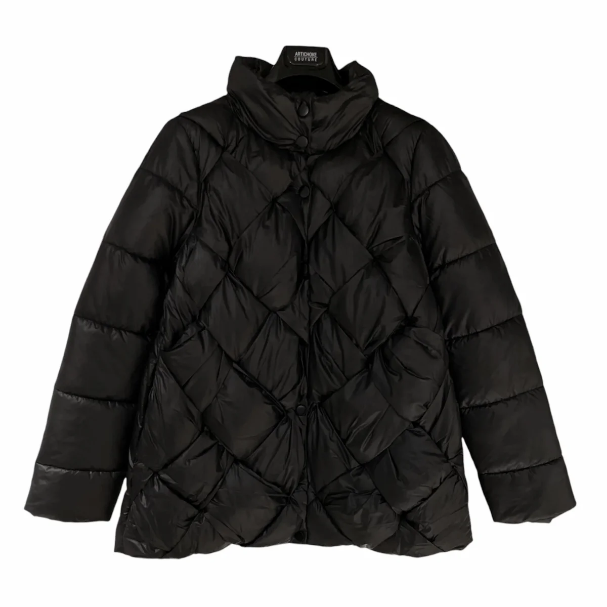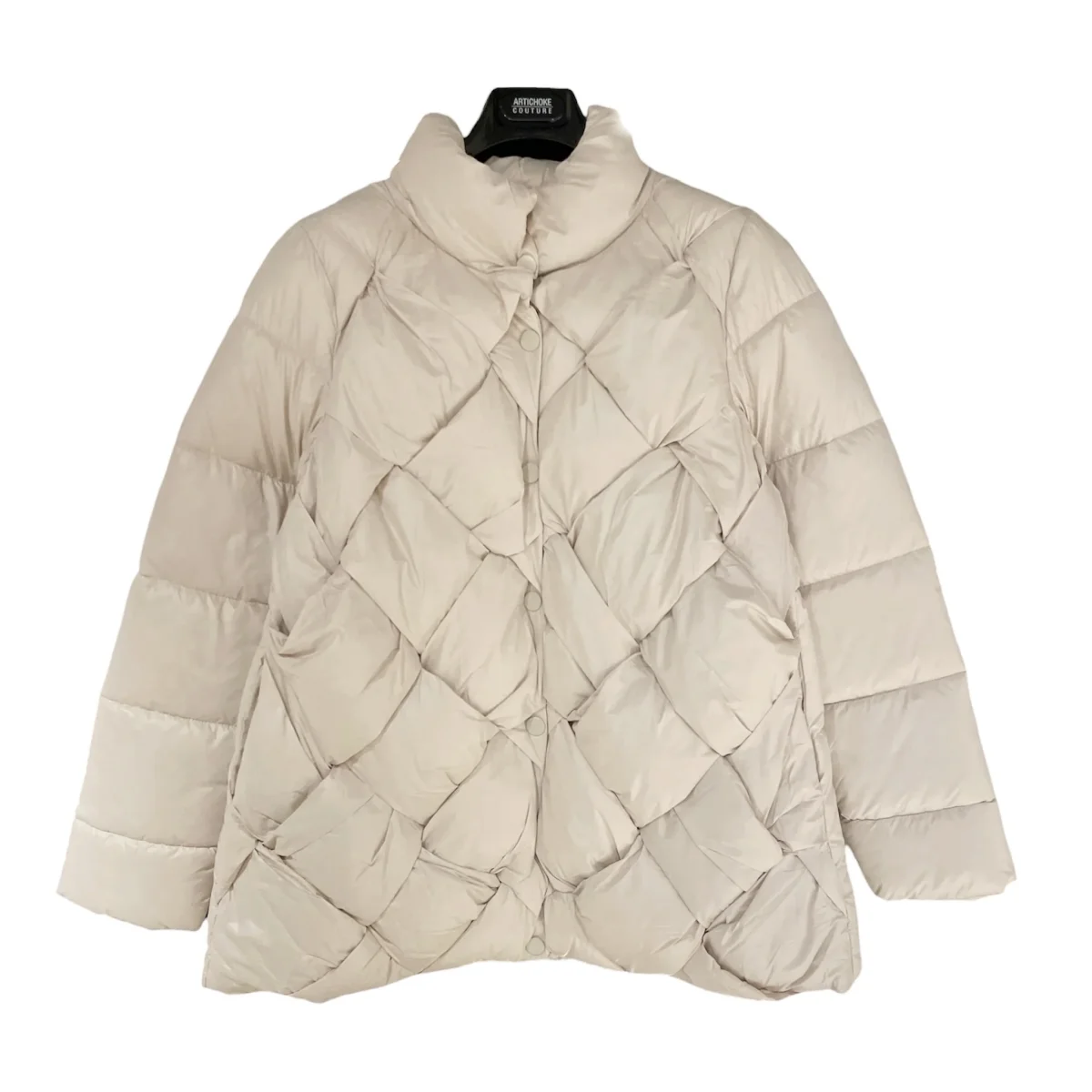 Giubbino donna in tessuto tecnico semi lucido particolare lavorazione intrecciata del tessuto. Collo pistagna, chiusura con bottoni automatici in tinta. Tasche laterali. Vestibilità regolare.