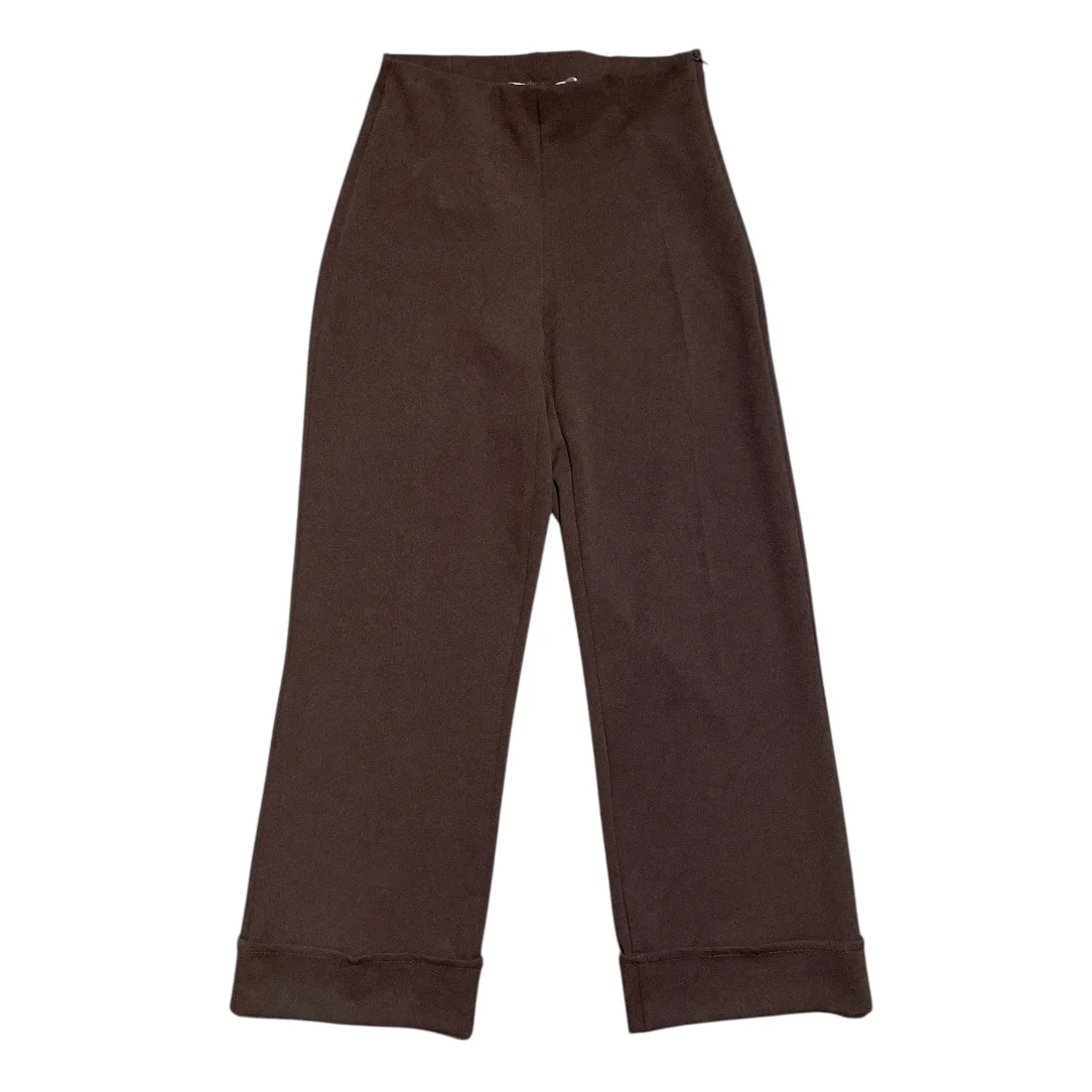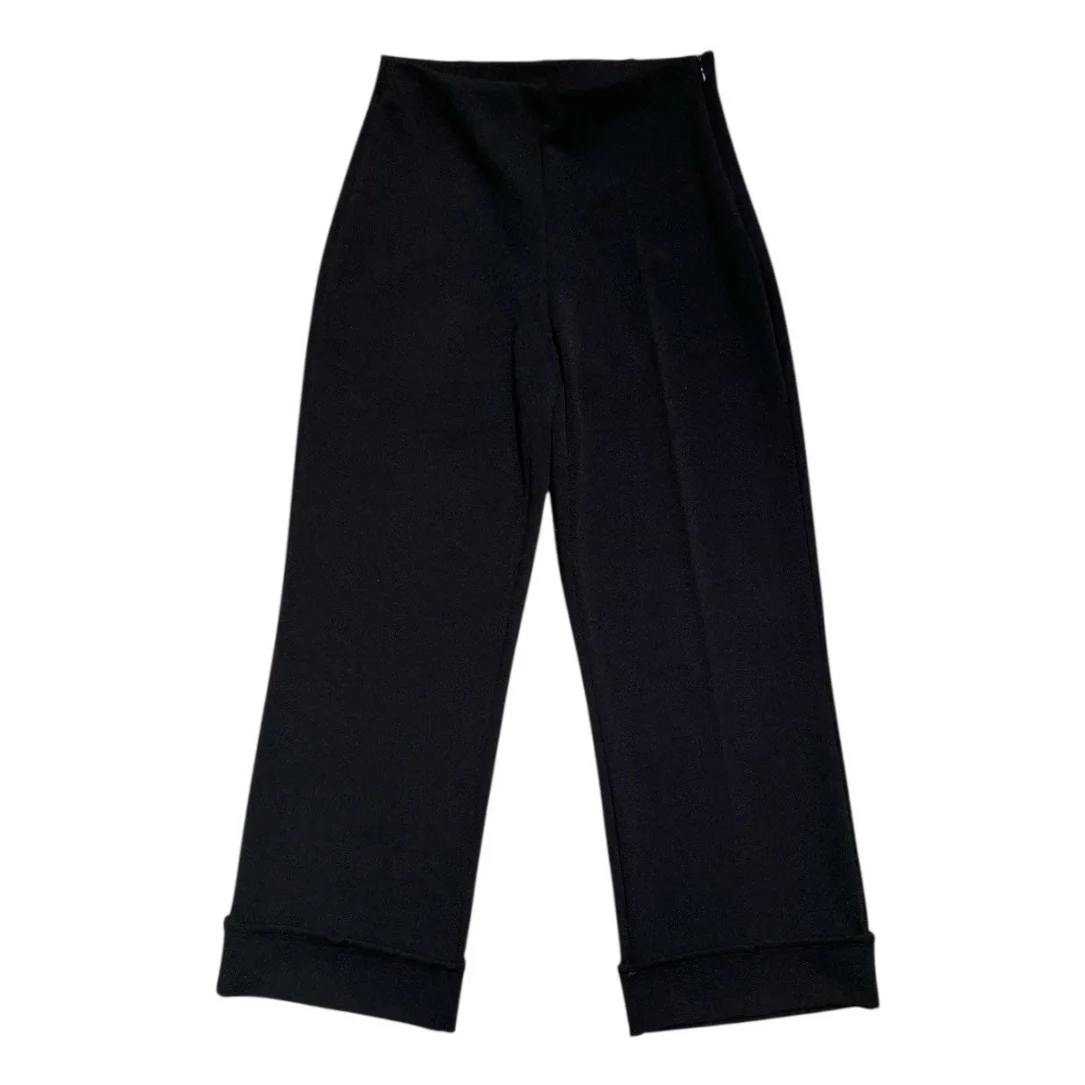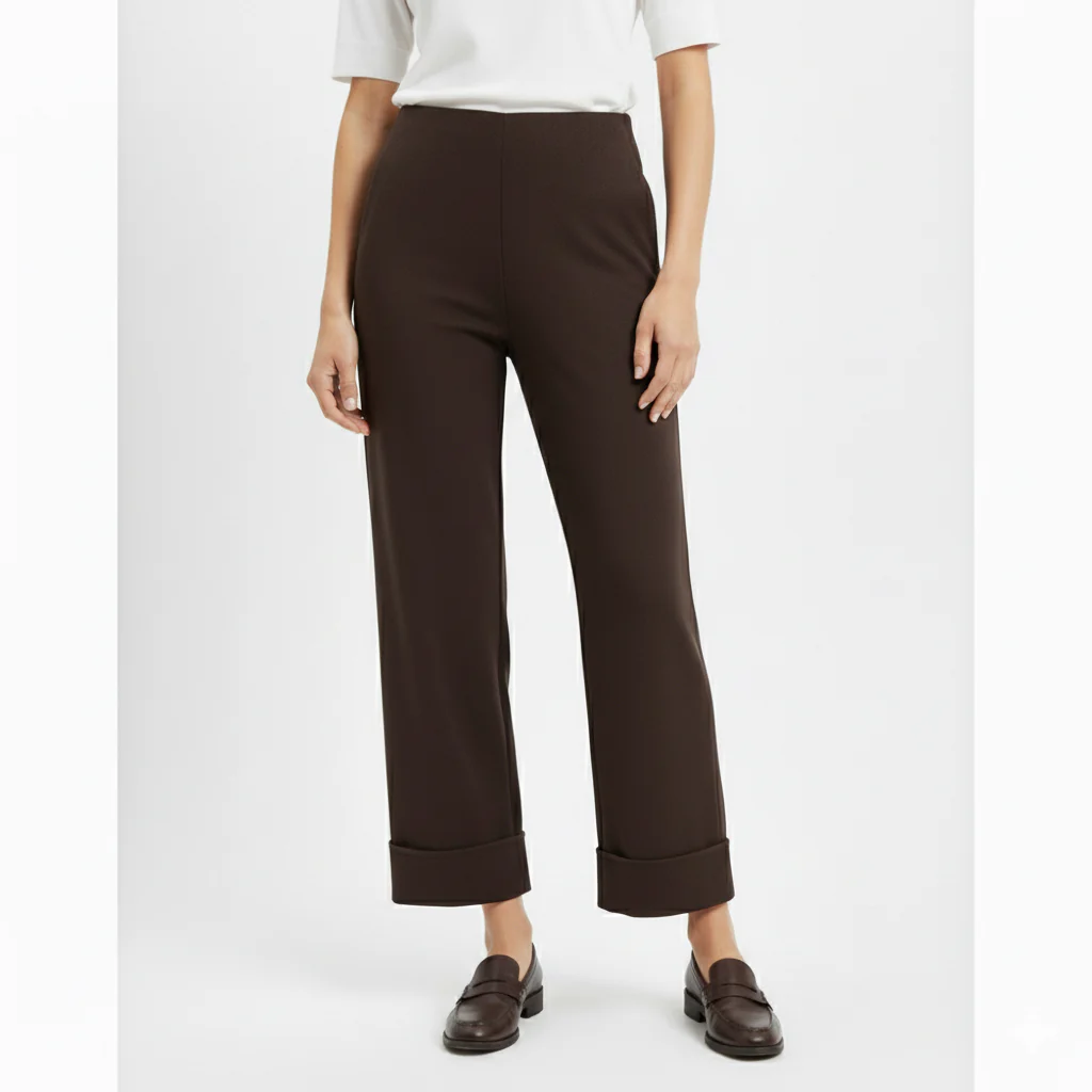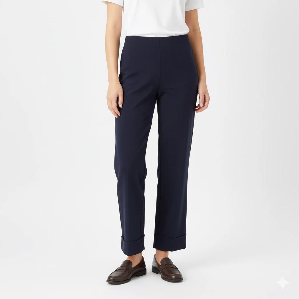 Pantalone basic in tessuto elasticizzato. Vita con elastico interno e chiusura con zip invisibile laterale. Vestibilità aderente sul bacino, poi dritta sulle gambe. Fondo lunghezza capri alla caviglia con maxi risvolto. Vestibilità regolare. Composizione tessuto 95% poliestere 5% elastan.