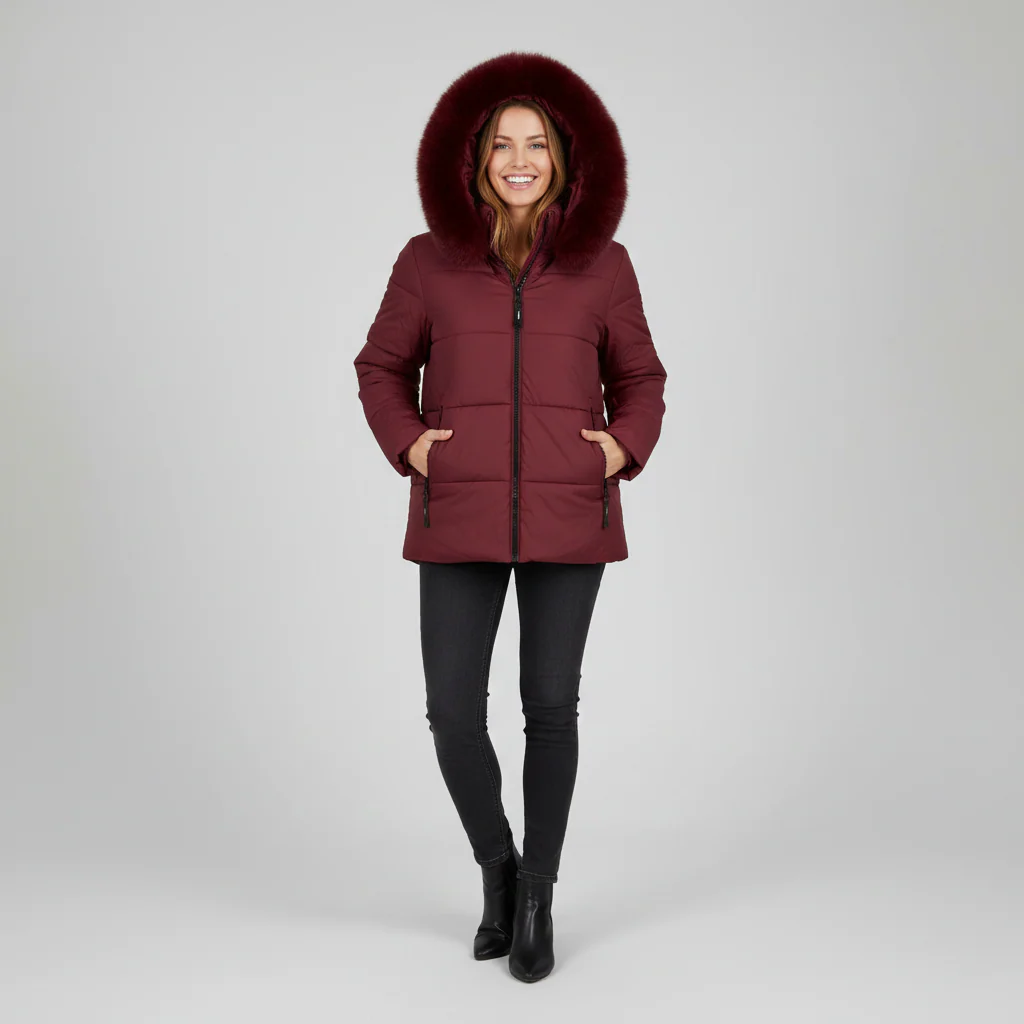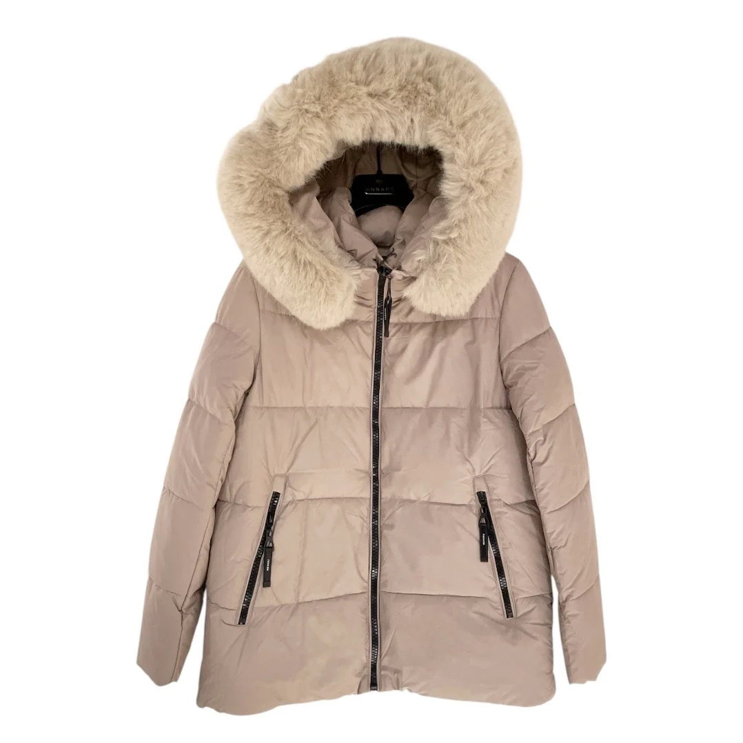Piumino midi in tessuto tecnico nylon. Ampio cappuccio con bordo in ecopelliccia staccabile. Chiusura con zip centrale gommata. Tasche laterali chiuse da zip. Maniche lunghe con polsino interno elasticizzato. Vestibilità regolare.