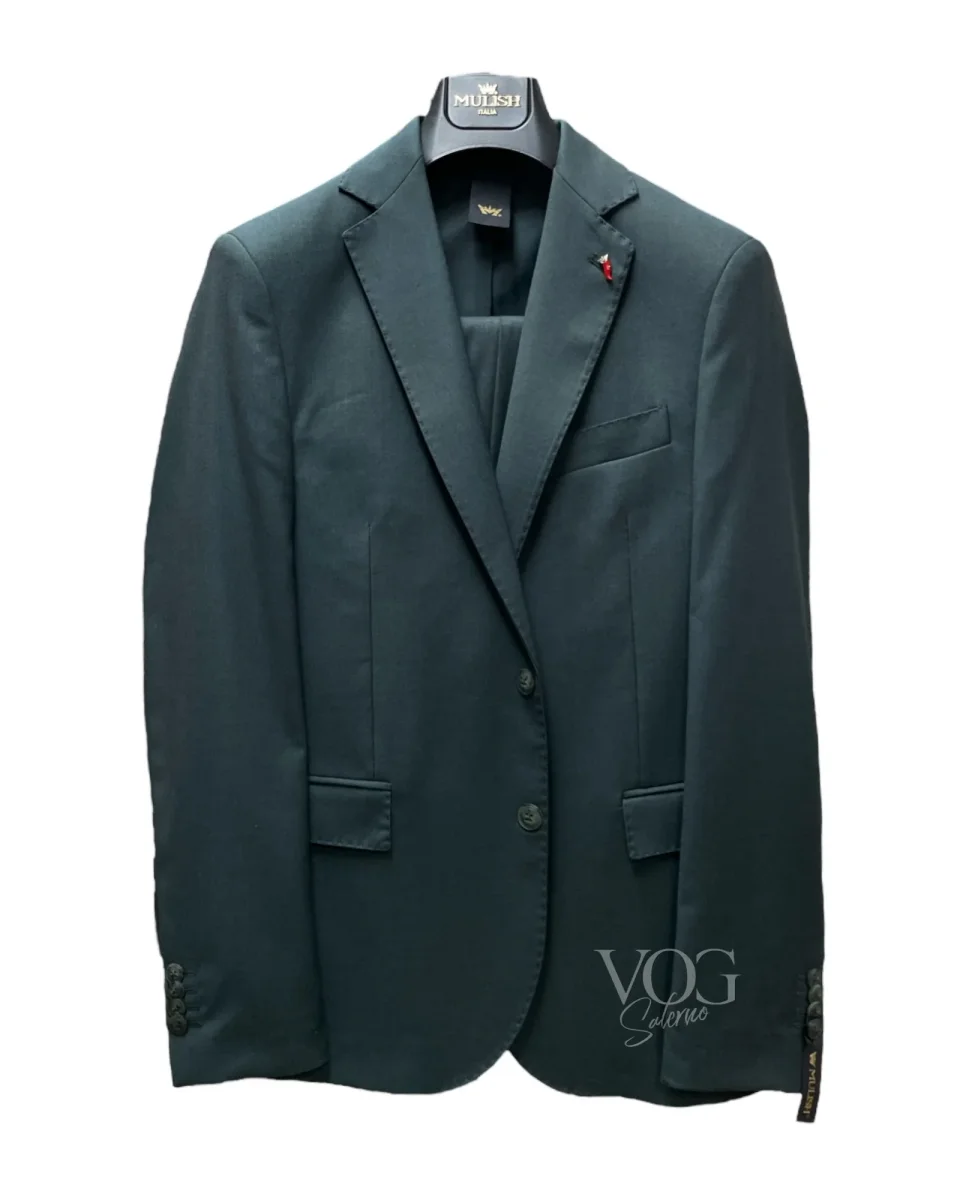 Abito in tessuto tecnico effetto satin micro lavorato. Collo con revers regolari con dettagli impunture su tutta la lunghezza. Chiusura centrale a due bottoni, tasche laterali con pattina applicata, taschino sul petto. Fodera interna in tinta. Pantalone slim fit, cinturino fisso con pattina e bottone esterno, tasche a filo. Gamba e fondo stretti. Vestibilità slim. Composizione tessuto 80% poliestere 17% viscosa 3% elastan, fodera 100% poliestere.