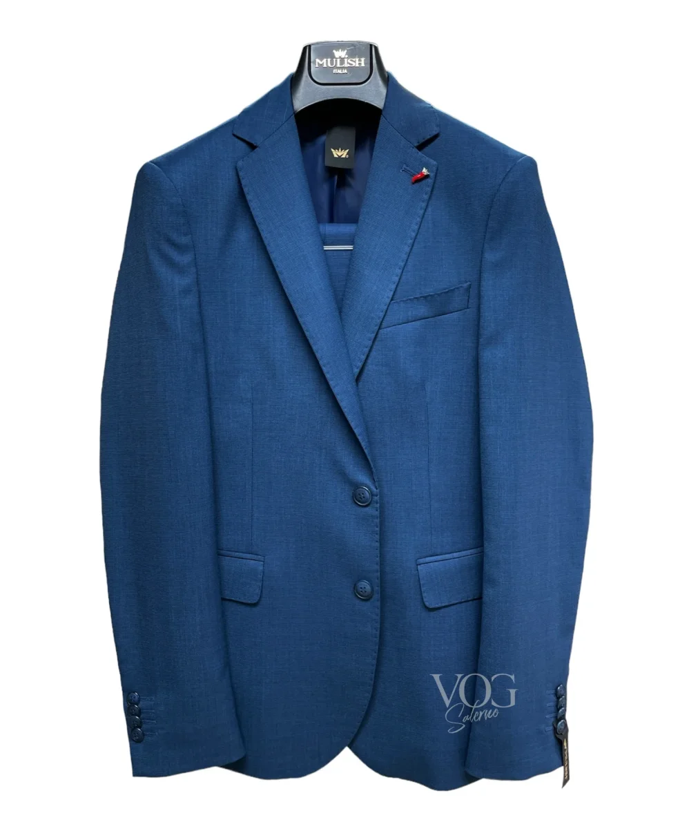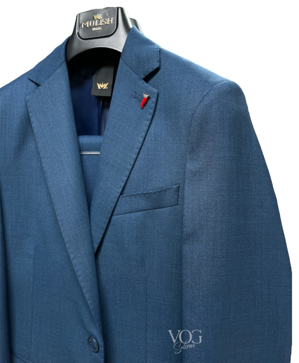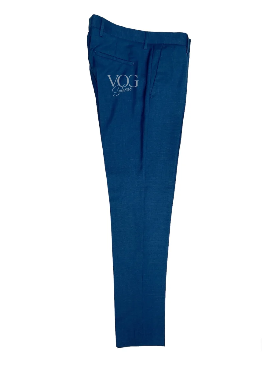 Abito in tessuto tecnico lavorato. Collo con revers regolari con dettagli impunture su tutta la lunghezza. Chiusura centrale a due bottoni, tasche laterali con pattina applicata, taschino sul petto. Fodera interna in tinta. Pantalone slim fit, cinturino fisso con pattina lunga e bottone esterno, tasche a filo. Gamba e fondo stretti. Vestibilità slim. Composizione tessuto 83% poliestere 11% viscosa 4% lana 2% elastan.