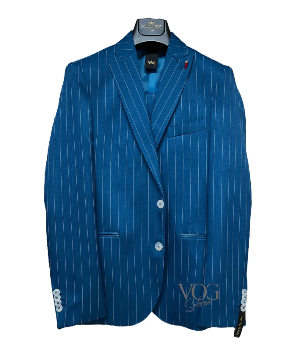 Abito slim fit in tessuto tecnico motivo gessato. Collo con revers regolari, dettaglio impunture su tutta la lunghezza, tasche a filetto. Chiusura a due bottoni in colore a contrasto. Pantalone vita regolare, cinturino con passanti, chiusura con bottone e gancio e zip. Tasche a filo laterali e tasca a filetto posteriore. Gamba e fondo stretti. Vestibilità slim asciutta. Composizione tessuto 95% poliestere, 4% elastan, 1% viscosa.
