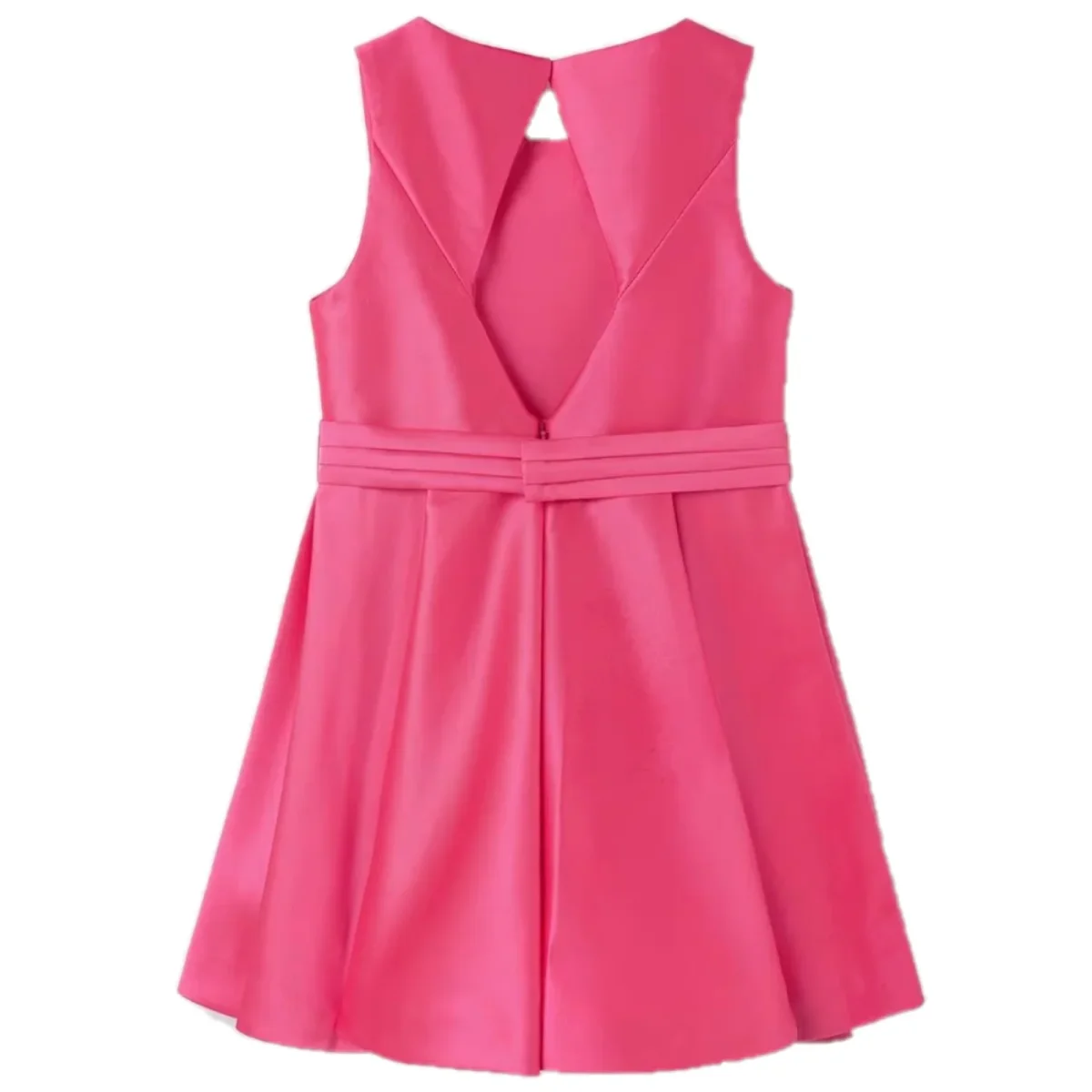 Abito ABEL & LULA in mikado con scollatura sul retro, bordo inferiore ondulato per dare volume alla gonna,chiusura sul retro con zip e bottoncino ,fodera in cotone ,in coordinato fusciacca con fiocco.