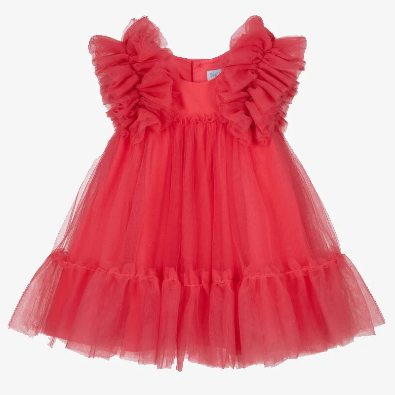 Abito ABEL & LULA in tulle con rouches e sottoabito in cotone. Chiusura con bottoni sul retro.