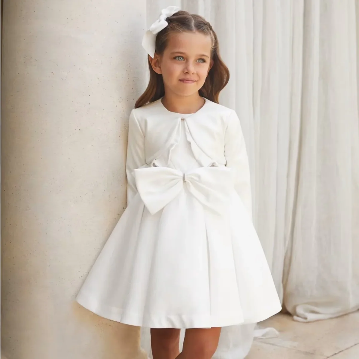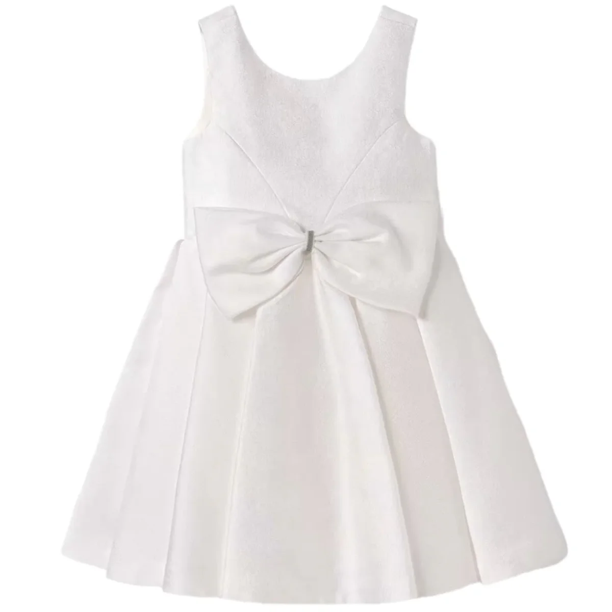 Abito ABEL & LULA in tessuto effetto brillantinato con fiocco applicato ,chiusura sul retro con zip , fodera in cotone.