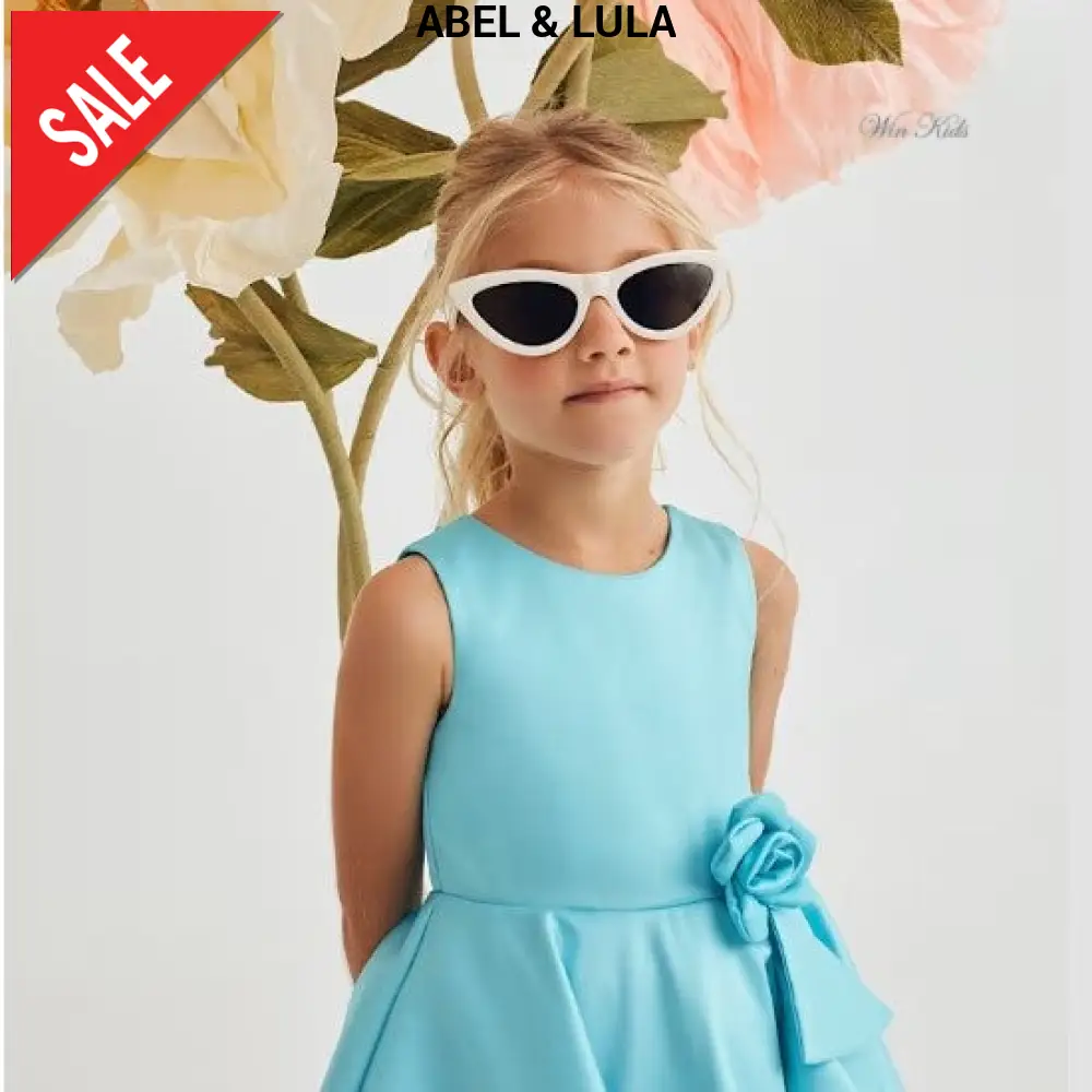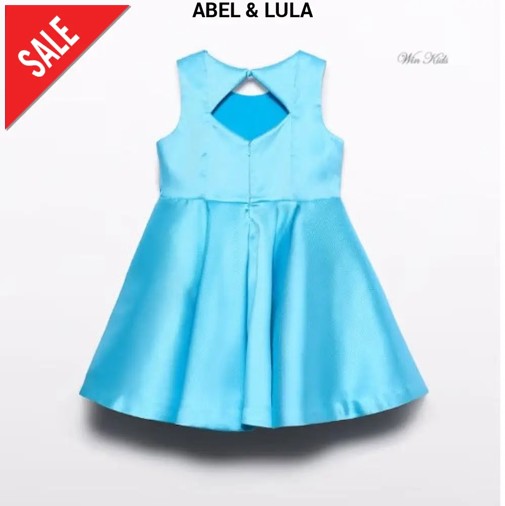 Abito ABEL & LULA in mikado con fiore applicato e volant. Chiusura con bottoncino e zip sul retro. Sottoabito in cotone.