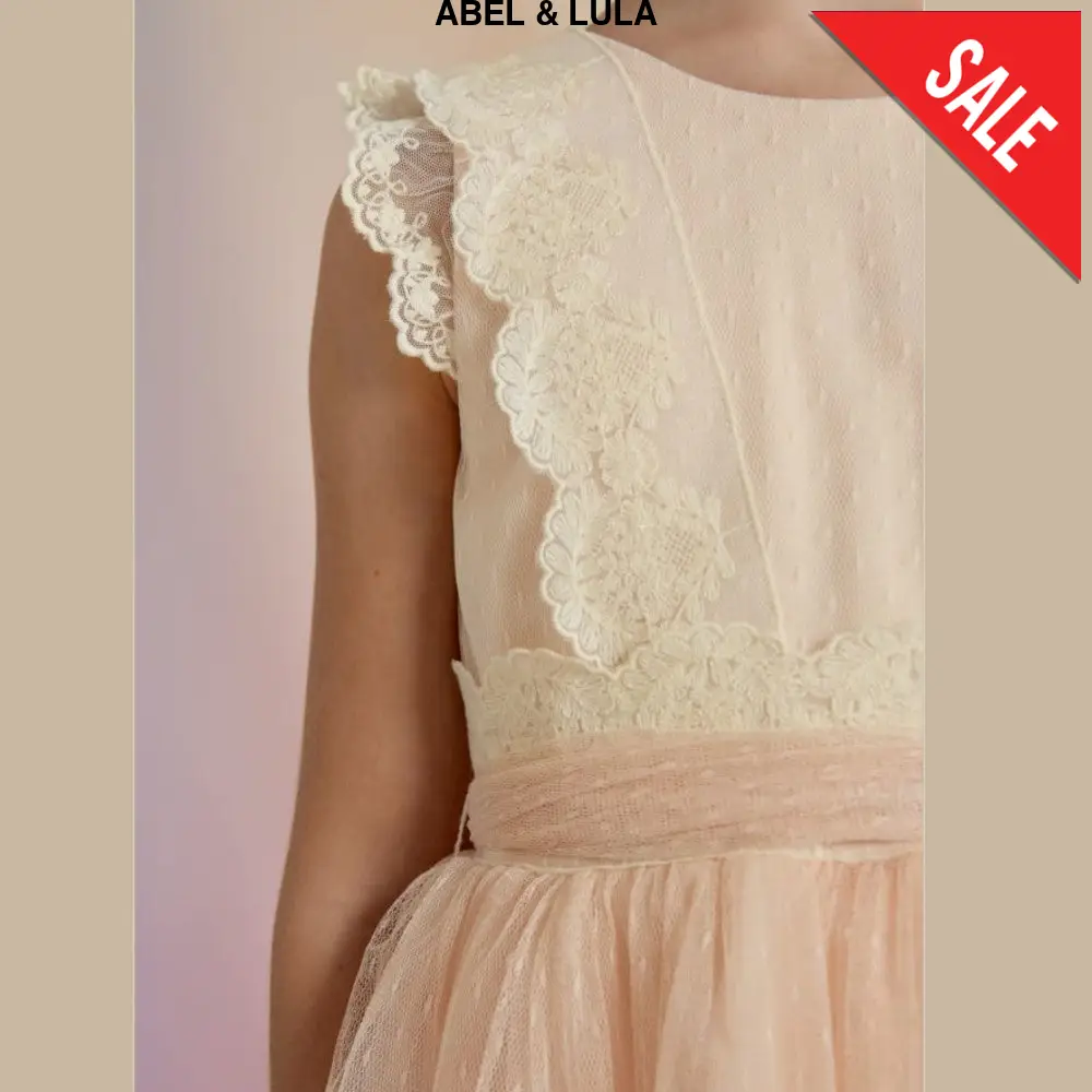 Abito ABEL&LULA in tulle lavorato cintura in tulle con fiocco sul retro applicazioni in merletto lavorato. apertura con zip a scomparsa sul retro.