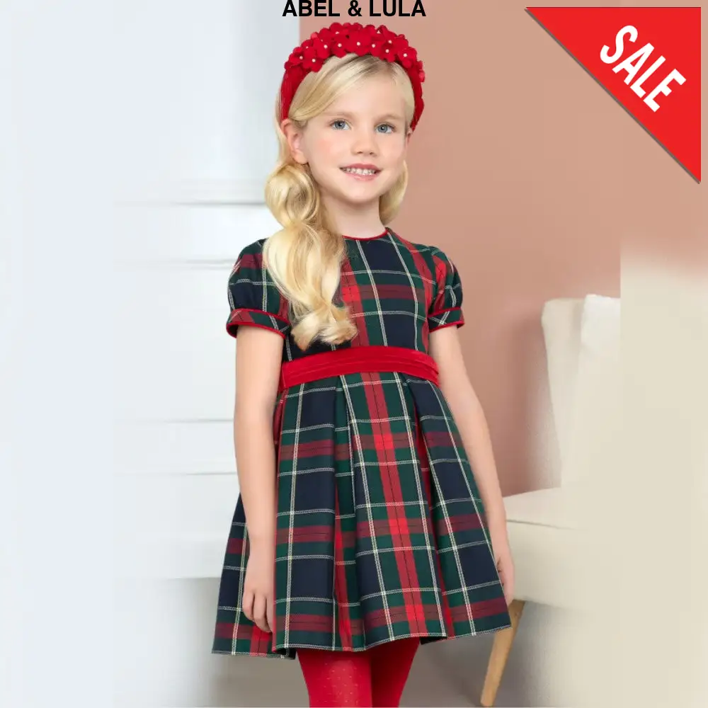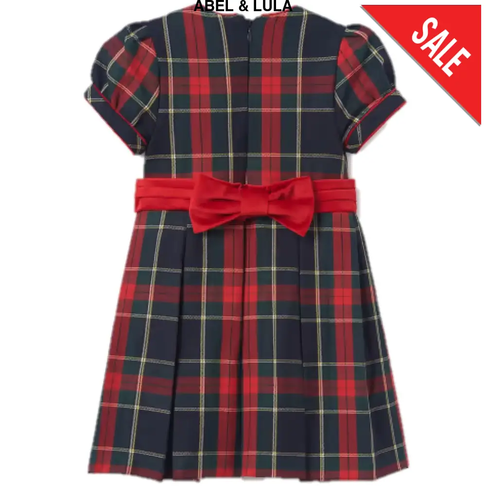 Abito ABEL&LULA fantasia scozzese con sottogonna in tulle foderato in cotone cintura in velluto rimovibile con fiocco sul retro chiusura con zip a scomparsa.