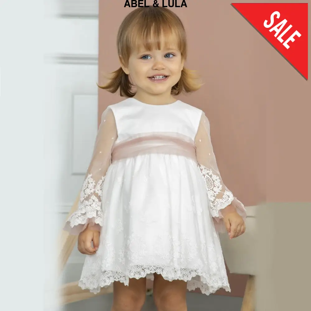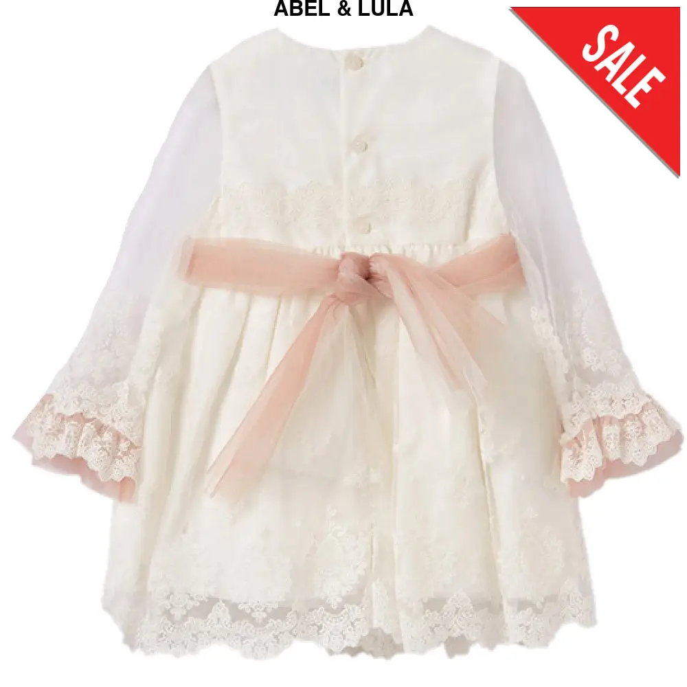 Abito ABEL&LULA in tulle con ricami e colori a contrasto maniche velate in tulle cintura in tulle in colore a contrasto fodera interna in cotone chiusura con bottoncini sul retro.