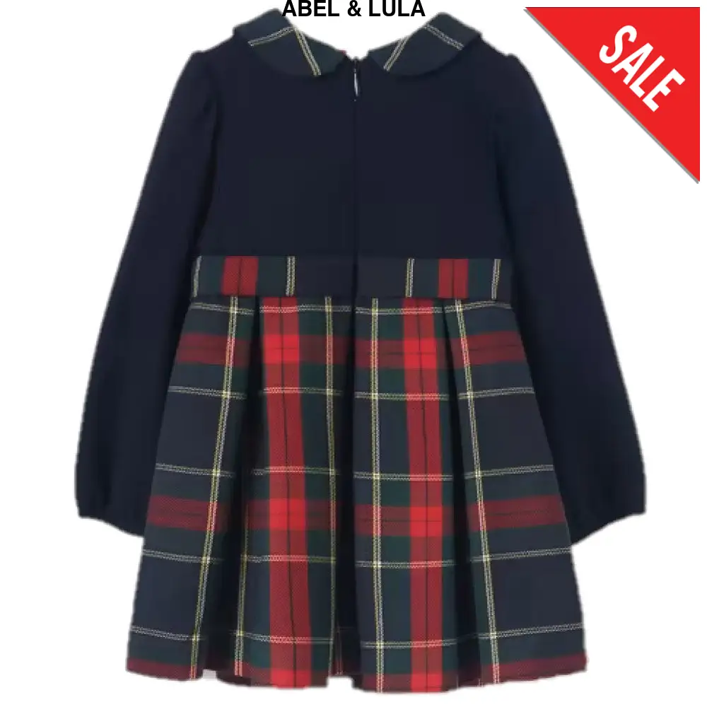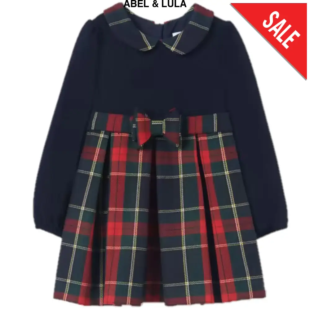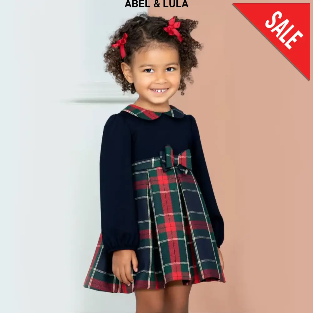 Abito ABEL&LULA in tessuto fantasia scozzese con fiocco rimovibile mediante clips elastico ai polsini chiusura zip sul retro.