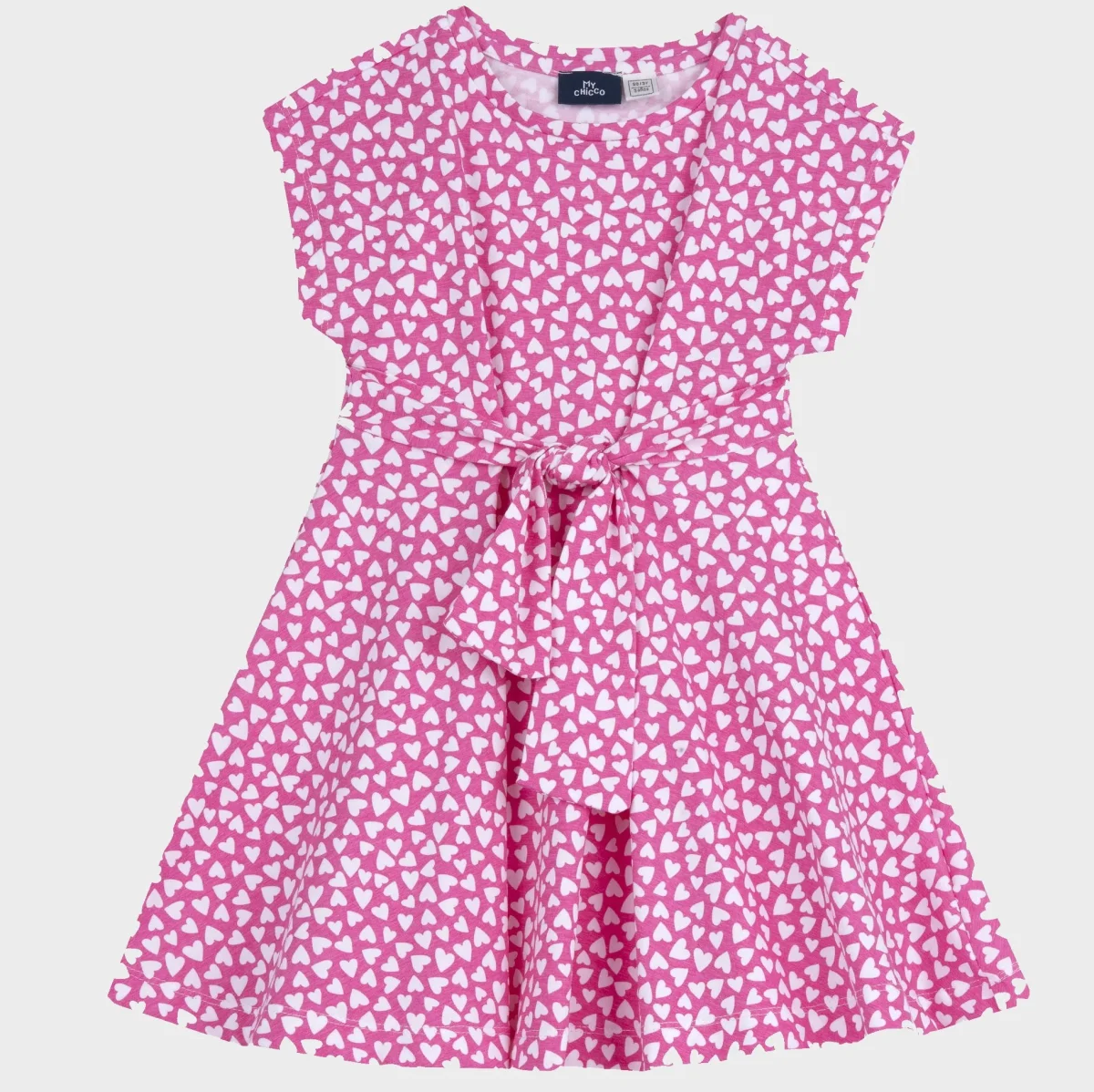 Abito CHICCO in cotone a fantasia cuori con finta cintura applicata.