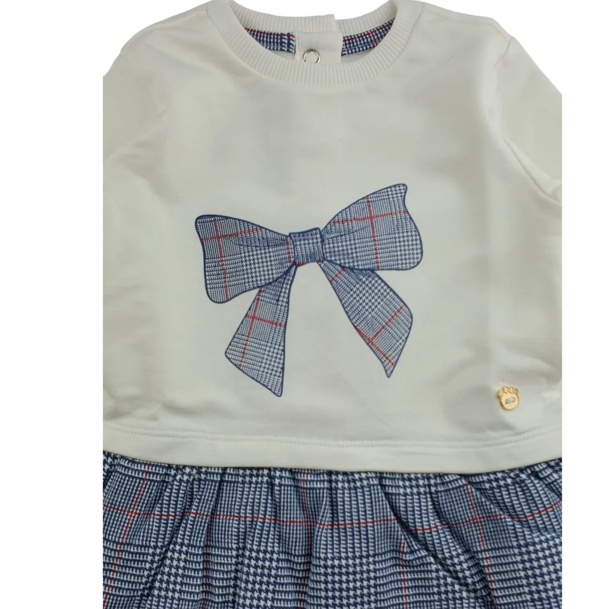 Abito CHICCO felpato con fiocco , chiusura con clips sul retro.