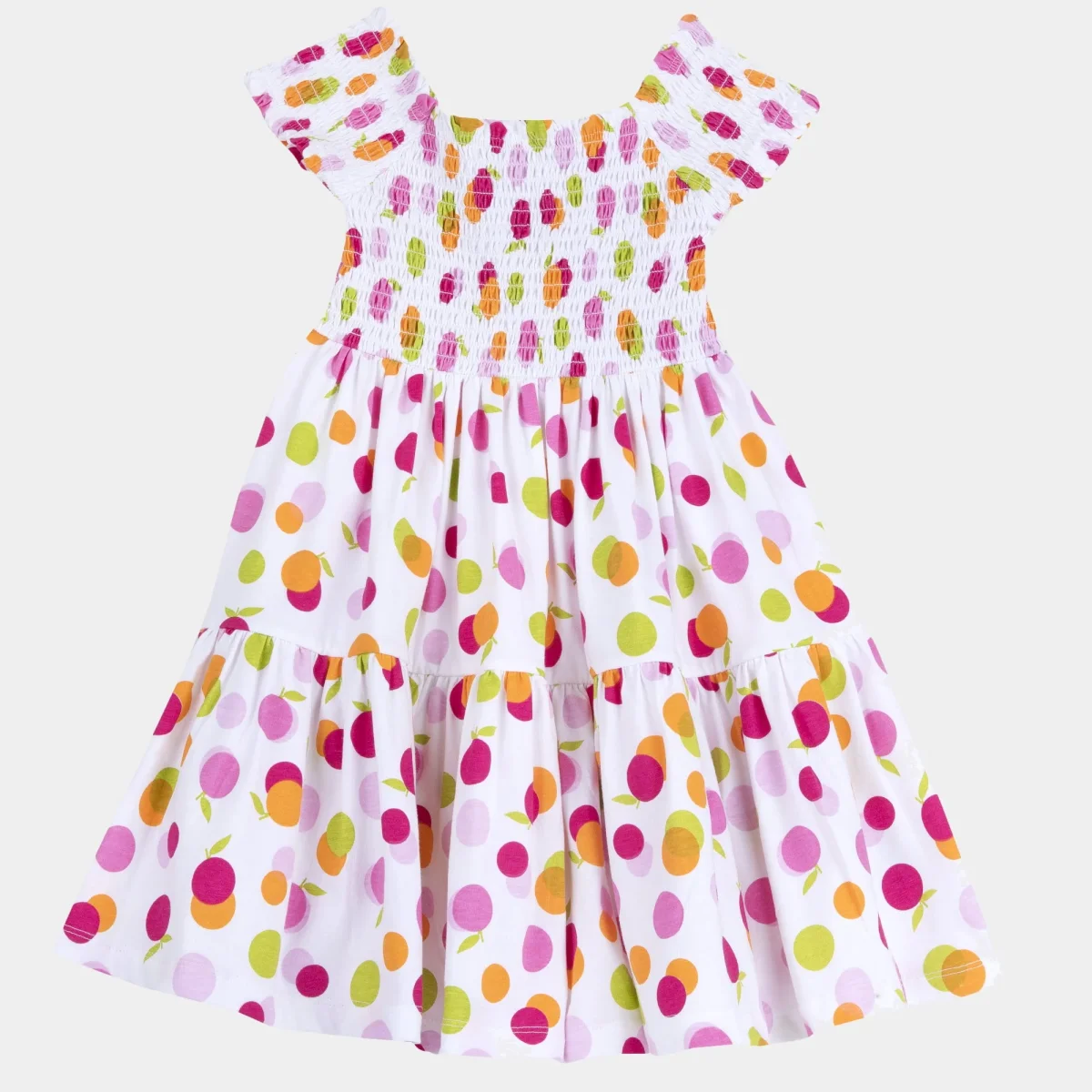 Abito CHICCO in cotone a fantasia in colori a contrasto con parte superiore elastica.