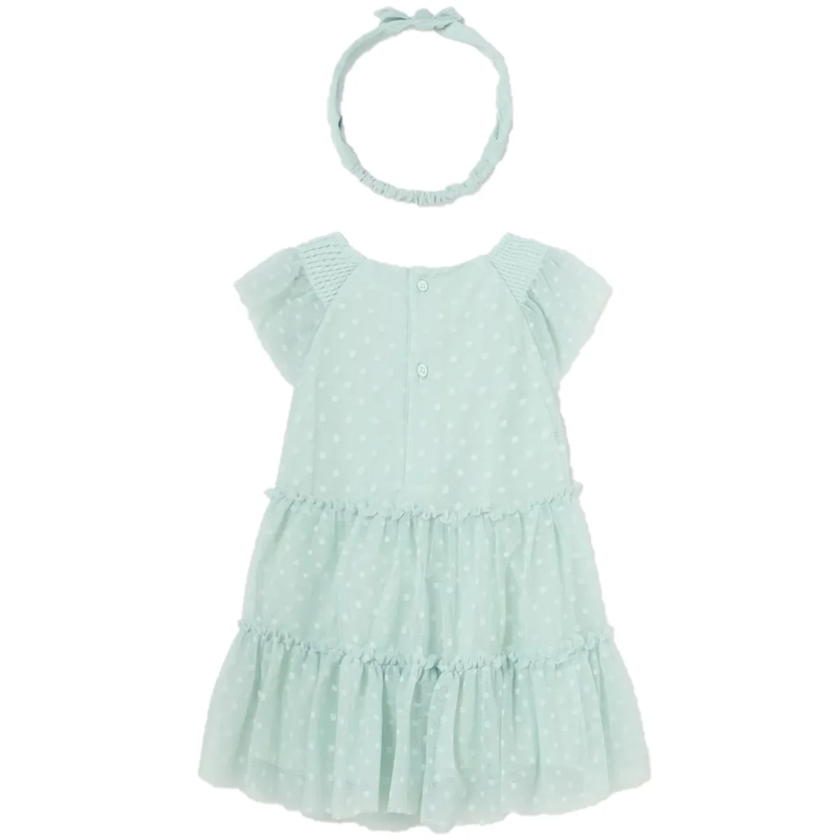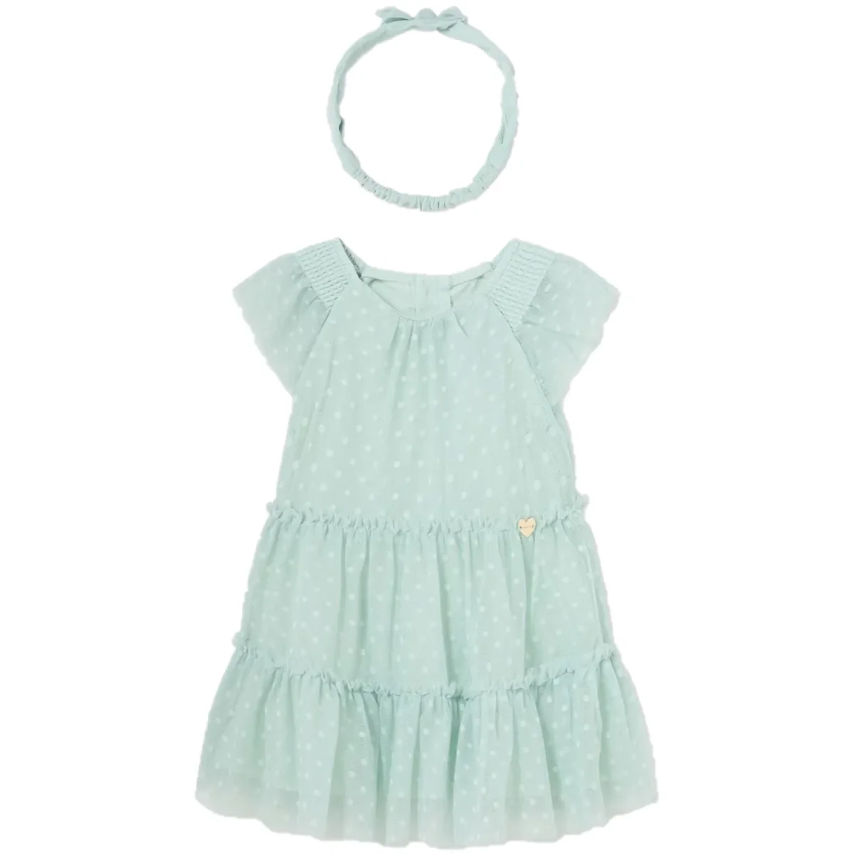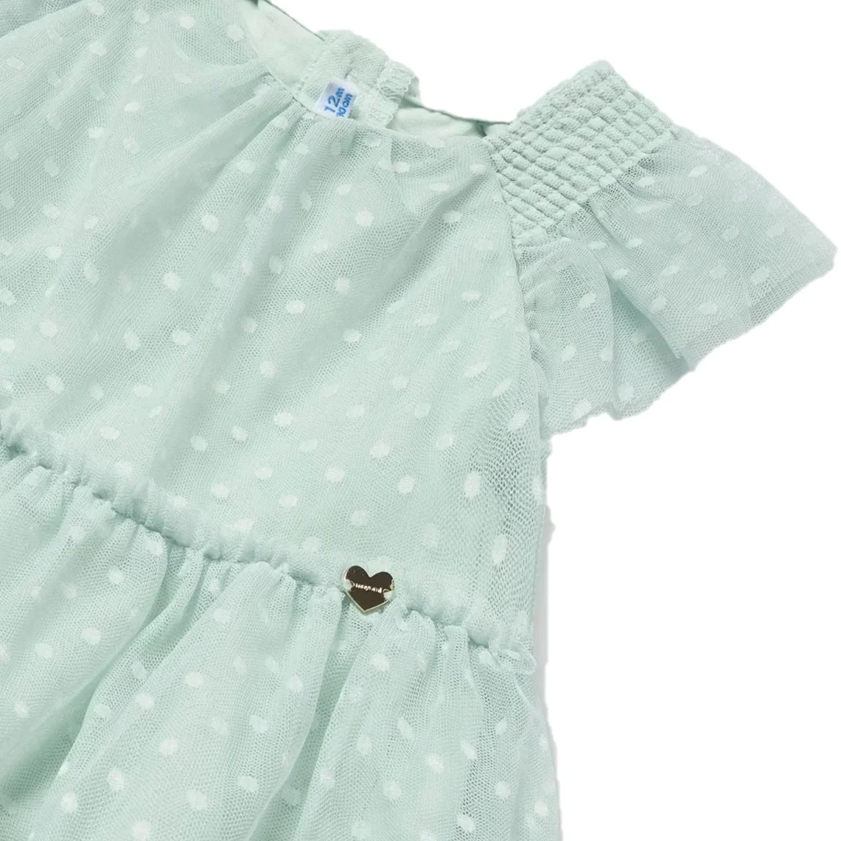 Abito e fascia MAYORAL in tulle lavorato con logo in metallo applicato, sottoabito in cotone. apertura con bottoncini sul retro.