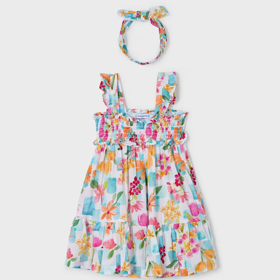 Abito e fascia MAYORAL a fantasia turchese 2 anni – 10 anni