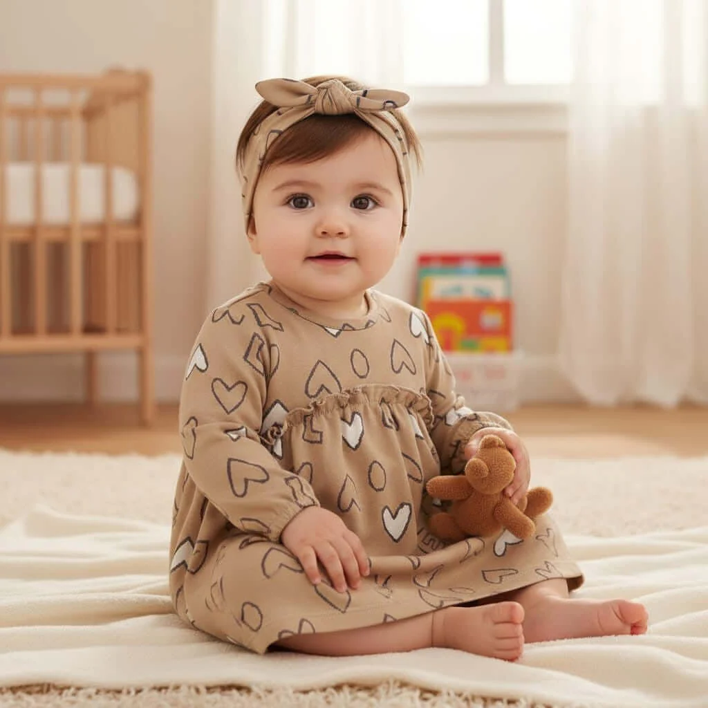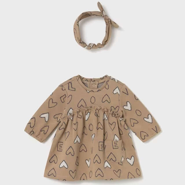 Abito e Fascia MAYORAL in tessuto a fantasia cuori.