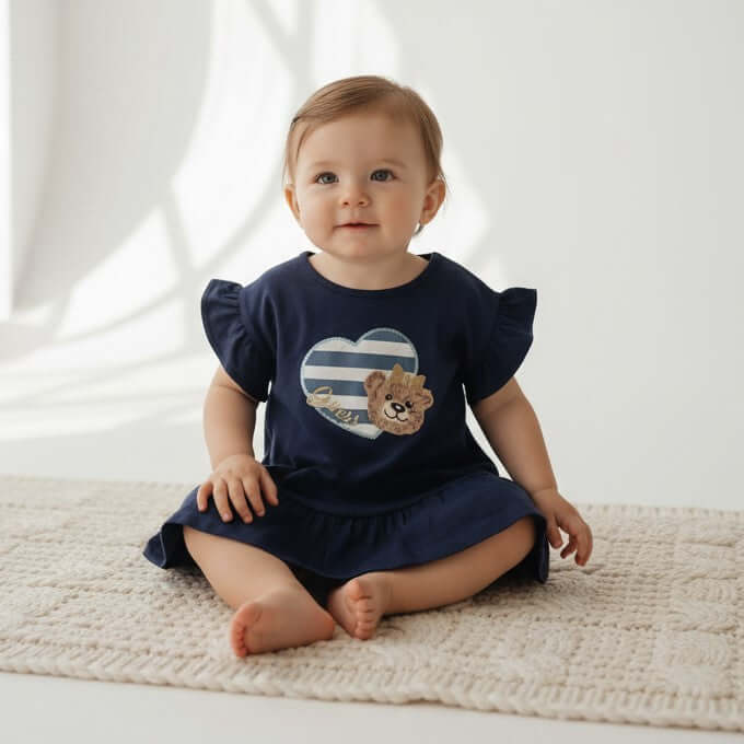 Abito GUESS blu con orsetta con coulotte abbinata 0/3 mesi – 24 mesi