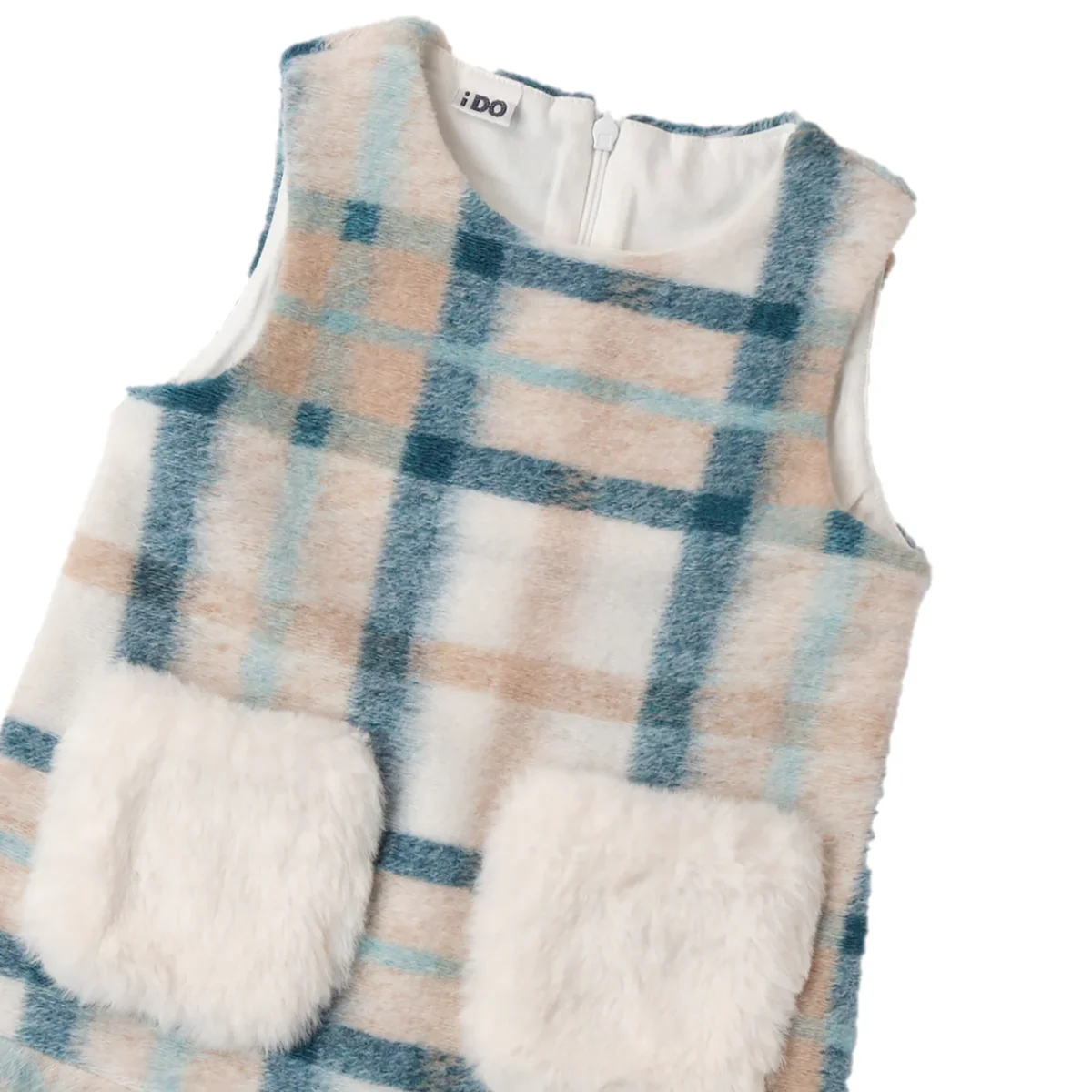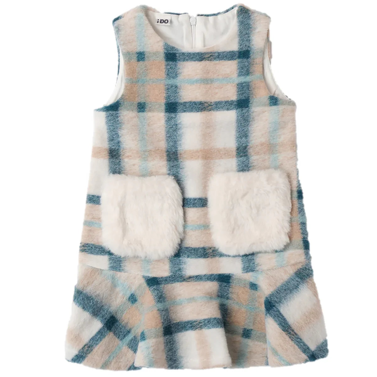Abito bambina i DO con applicazione in ecopelliccia, apertura sul retro con zip a scomparsa.