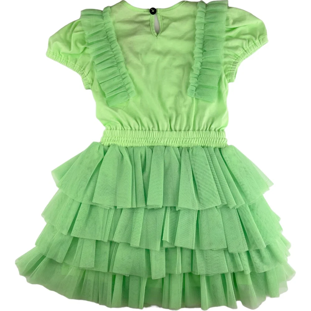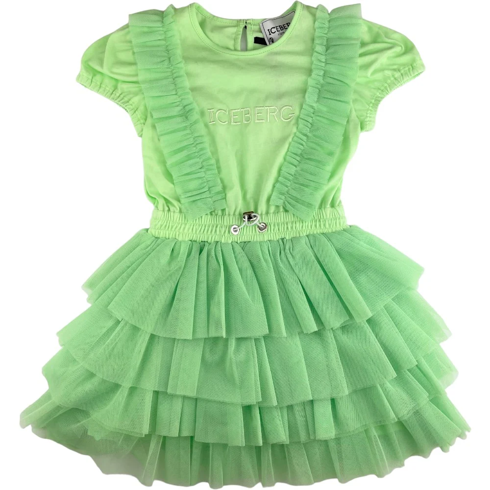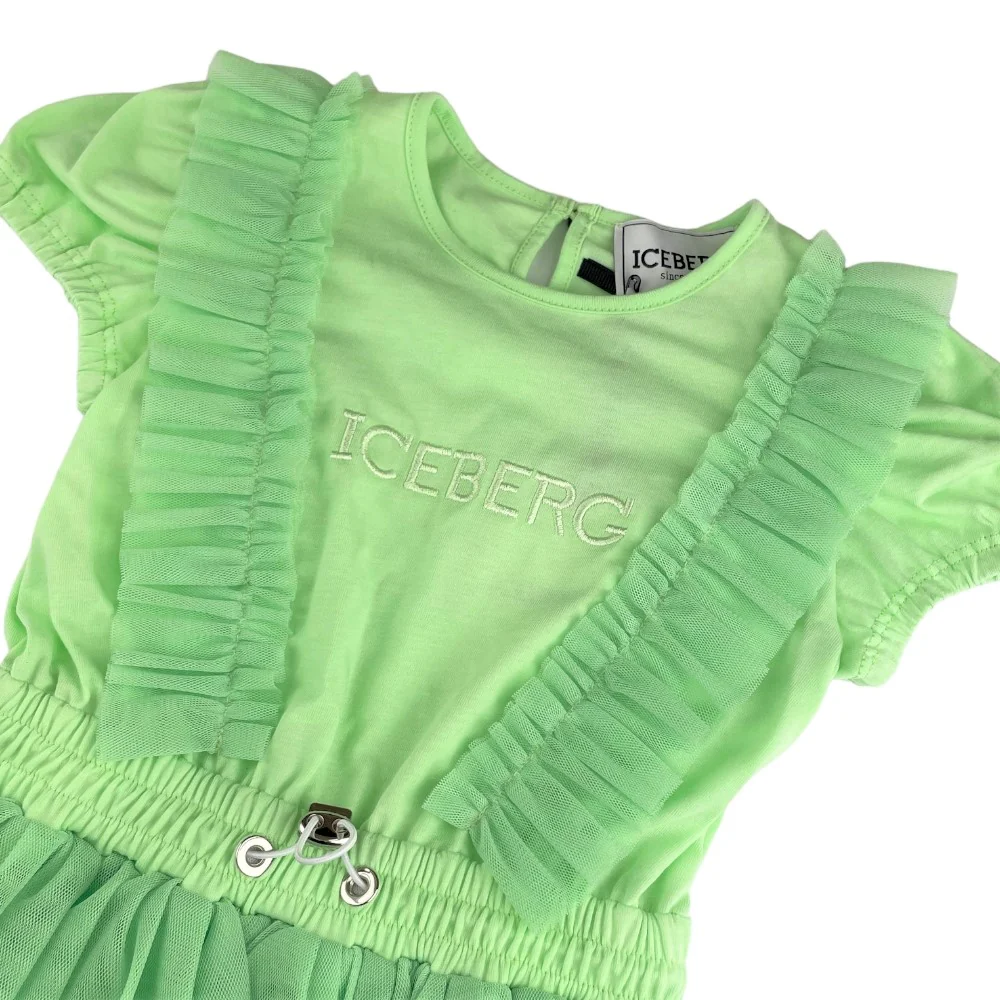Abito ICEBERG in cotone con rifiniture in tulle multi balze a contrasto logo ricamato. regolatore in vita elastico.