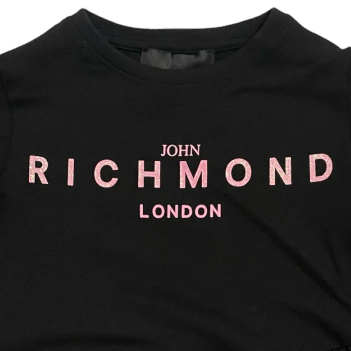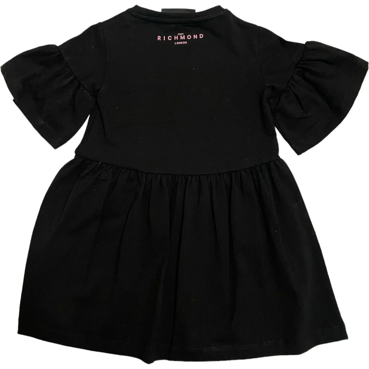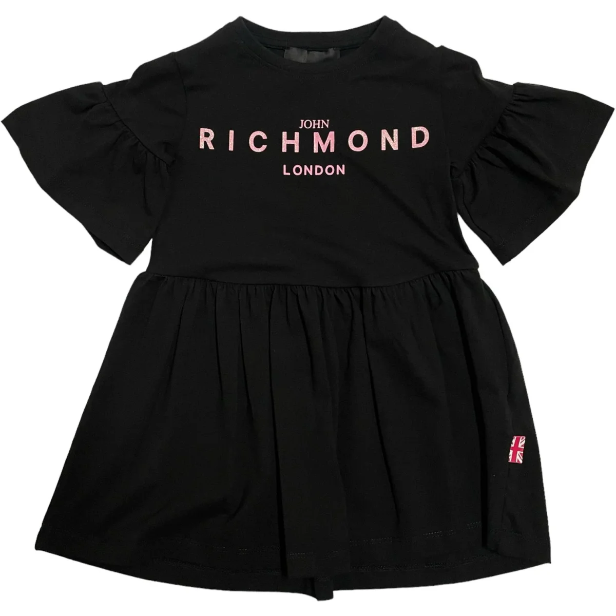Abito JOHN RICHMOND in cotone con manica a sbuffo, logo john richmond rosa effetto glitterato.
