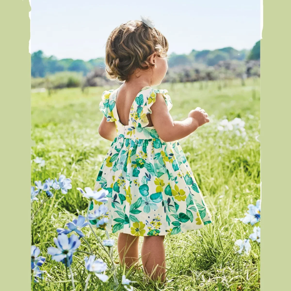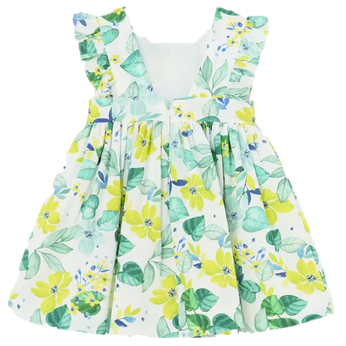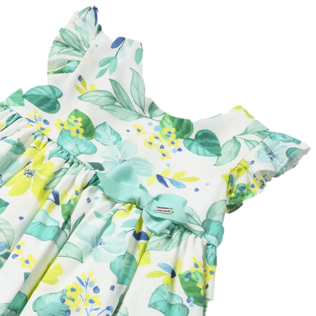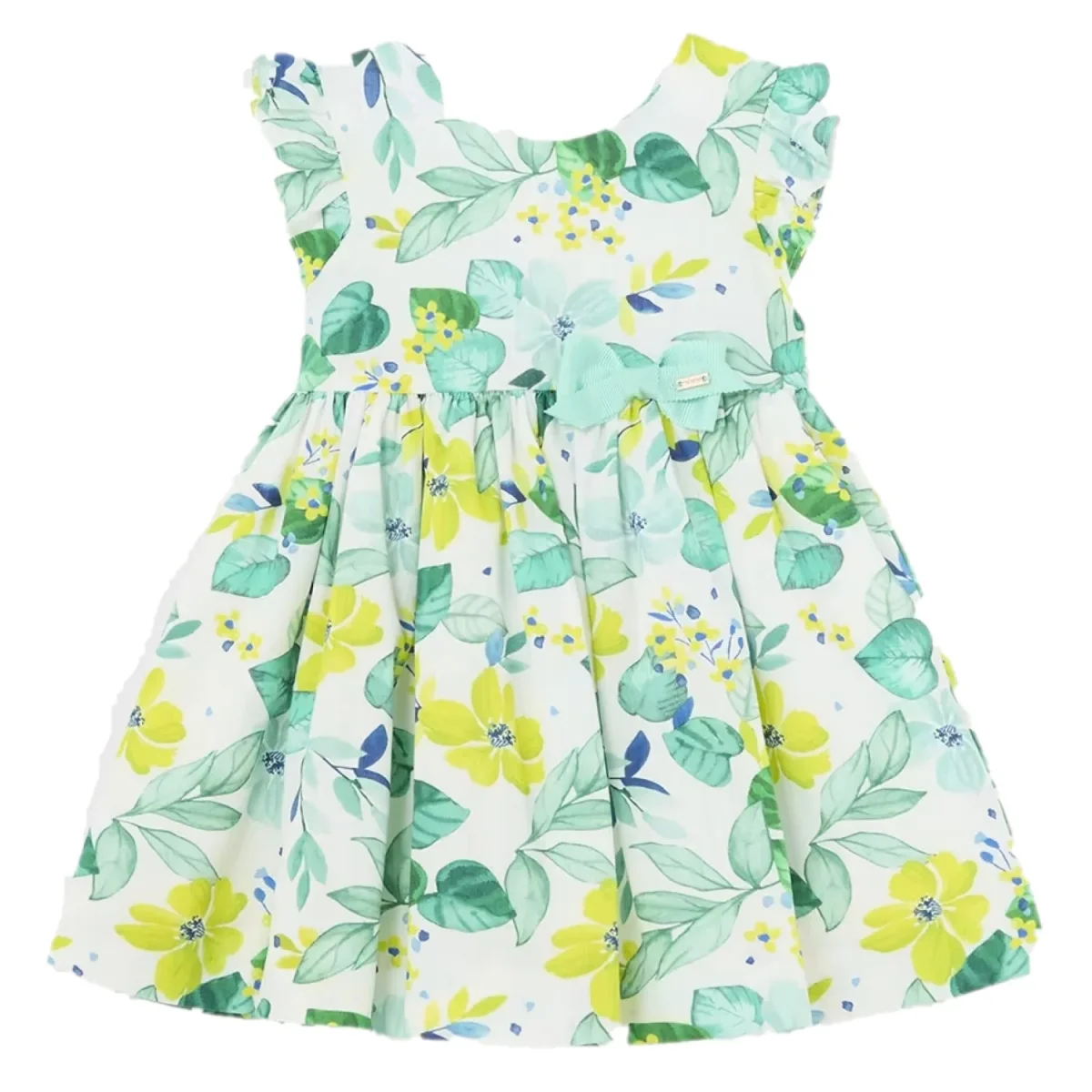 Abito MAYORAL in cotone a fantasia con fiocco applicato. sotto abito in cotone, apertura con zip a scomparsa sul retro.