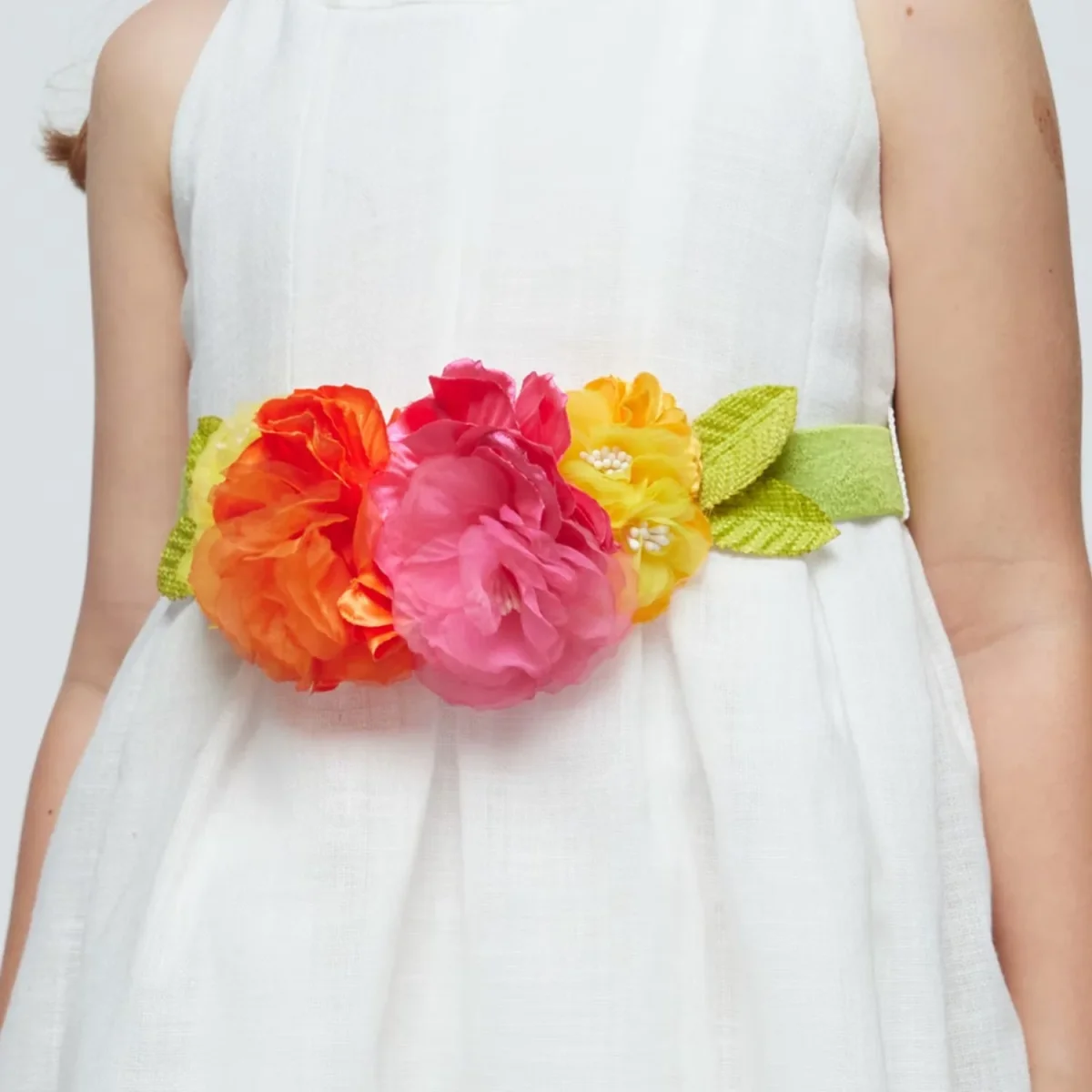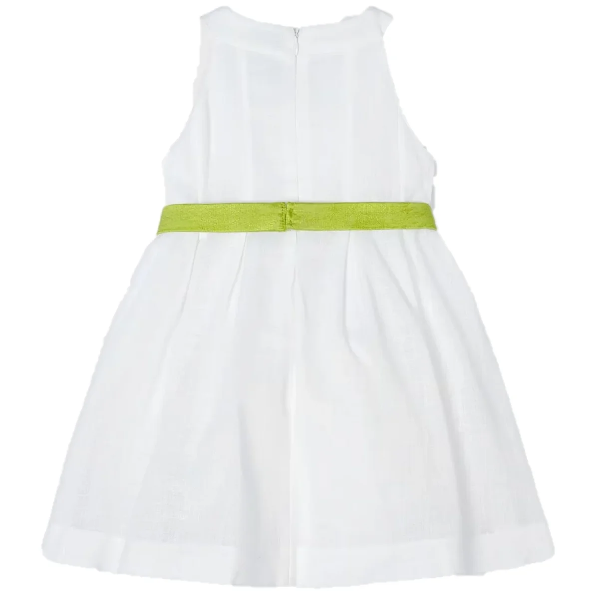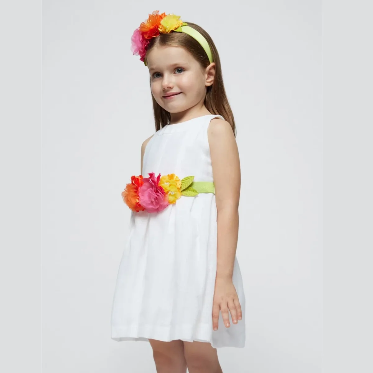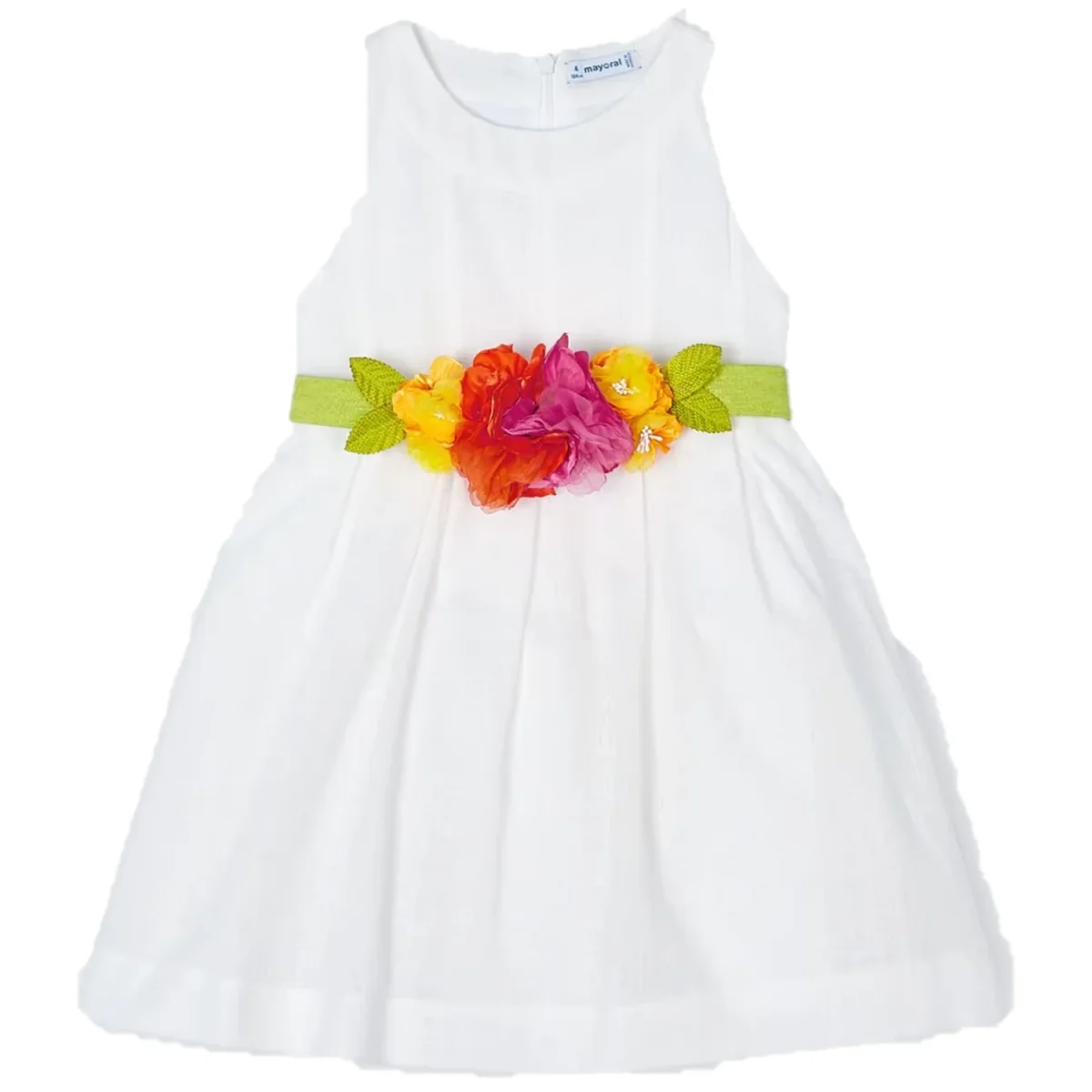 Abito MAYORAL dotato di cintura in vita con applicazione, sottoabito in cotone, chiusura sul retro con zip a scomparsa.