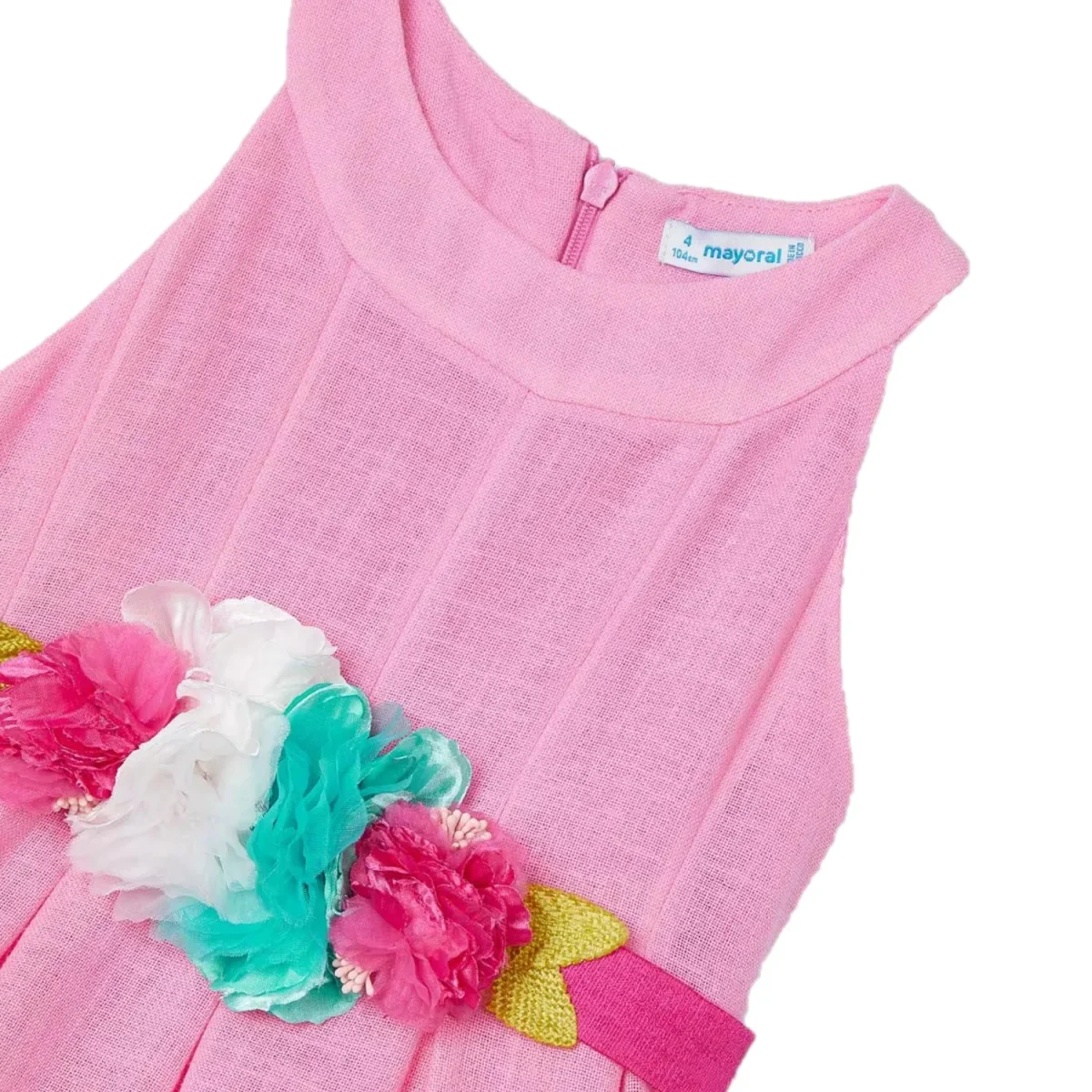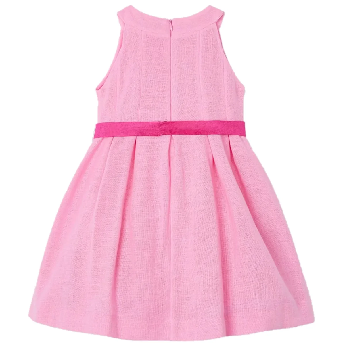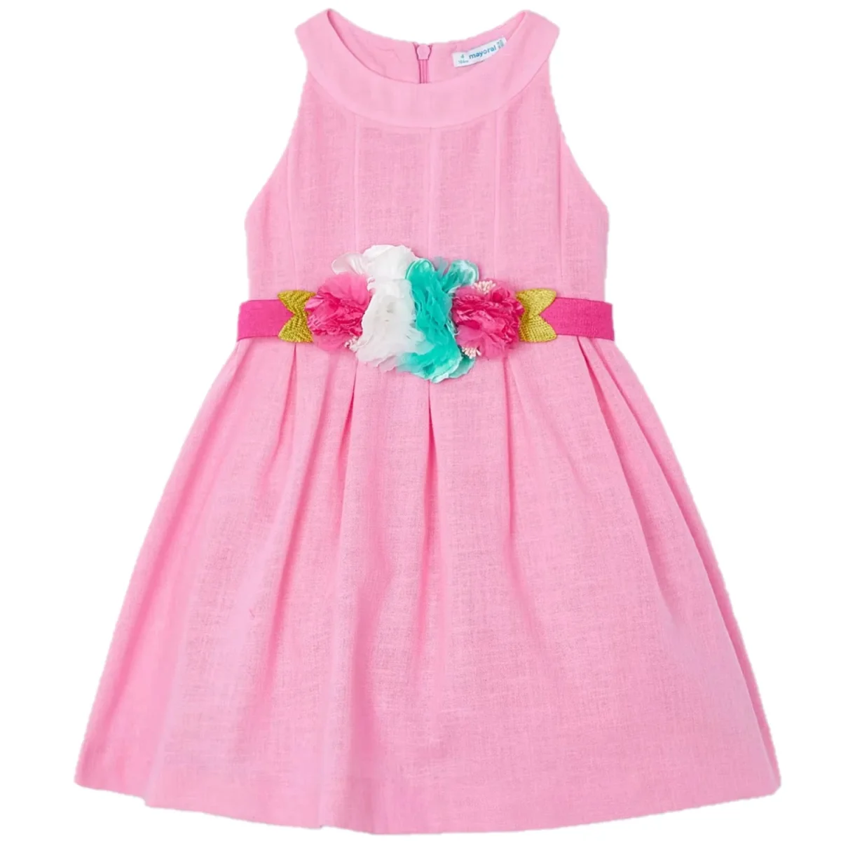 Abito MAYORAL in misto lino , dotato di cintura con applicazioni. sotto abito in cotone, apertura con zip a scomparsa sul retro.