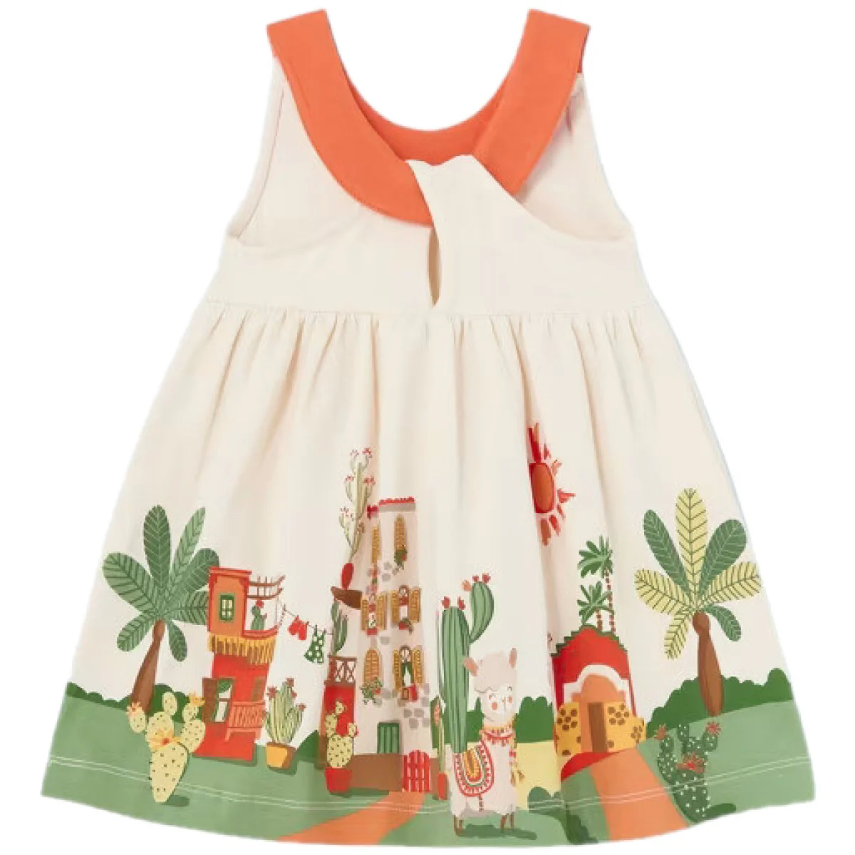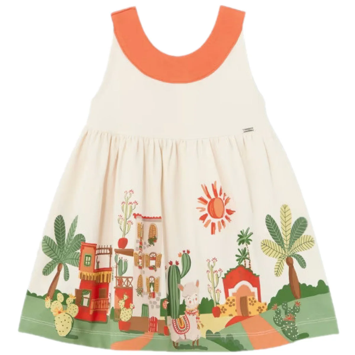 Abito MAYORAL in cotone a fantasia multicolor, logo applicato in metallo.