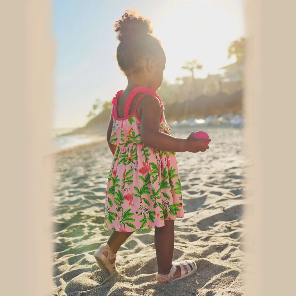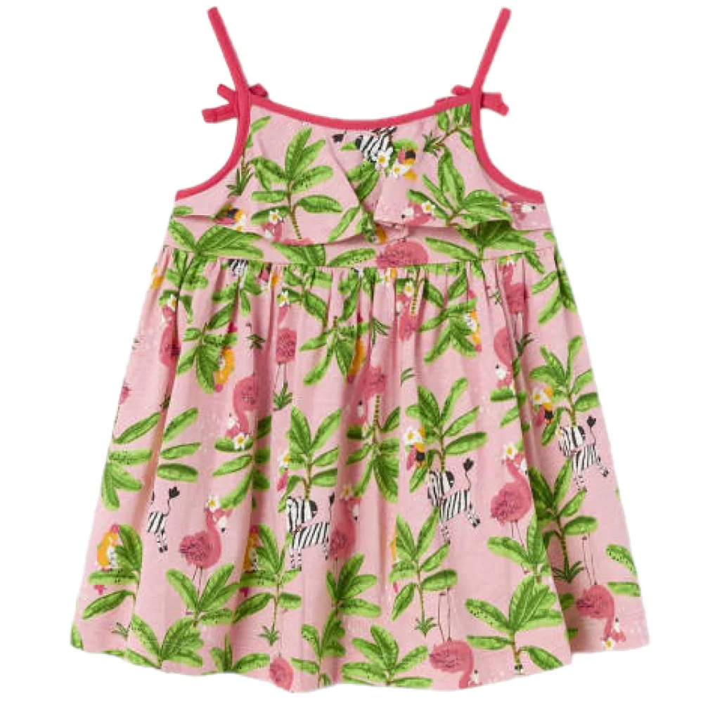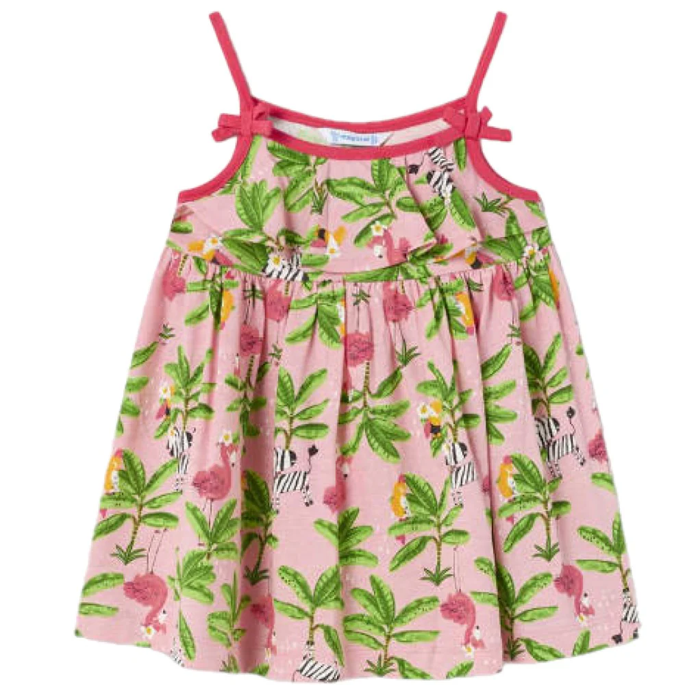 Abito MAYORAL in cotone con stampa tropicale con fiocchetti applicati alle maniche.Composizione100% cotone