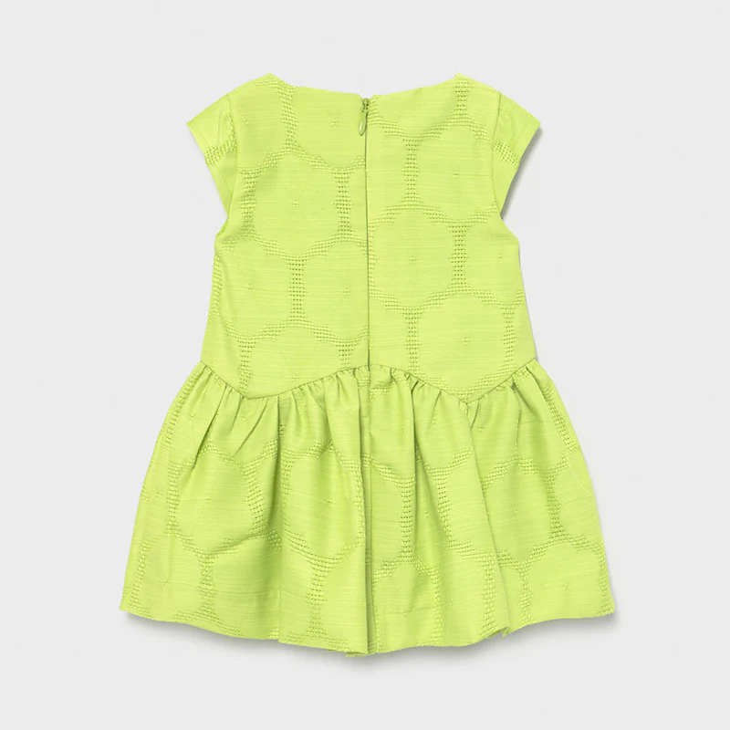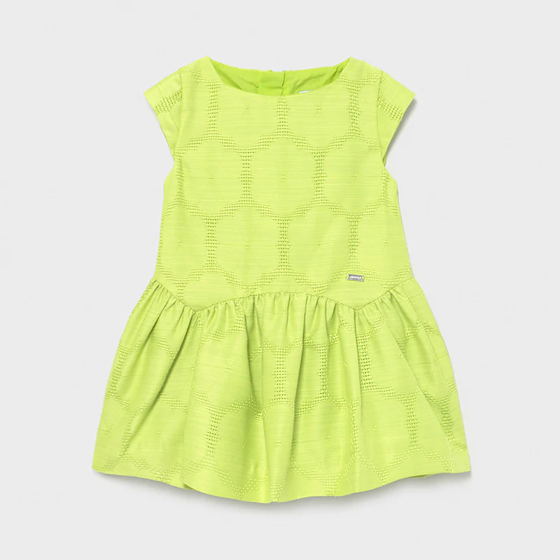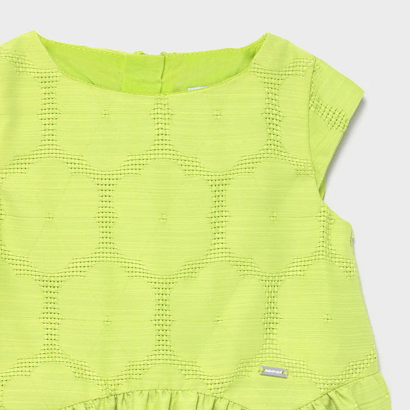 Abito MAYORAL in misto lino a fantasia logo applicato a rilievo fodera in cotone chiusura zip sul retro.