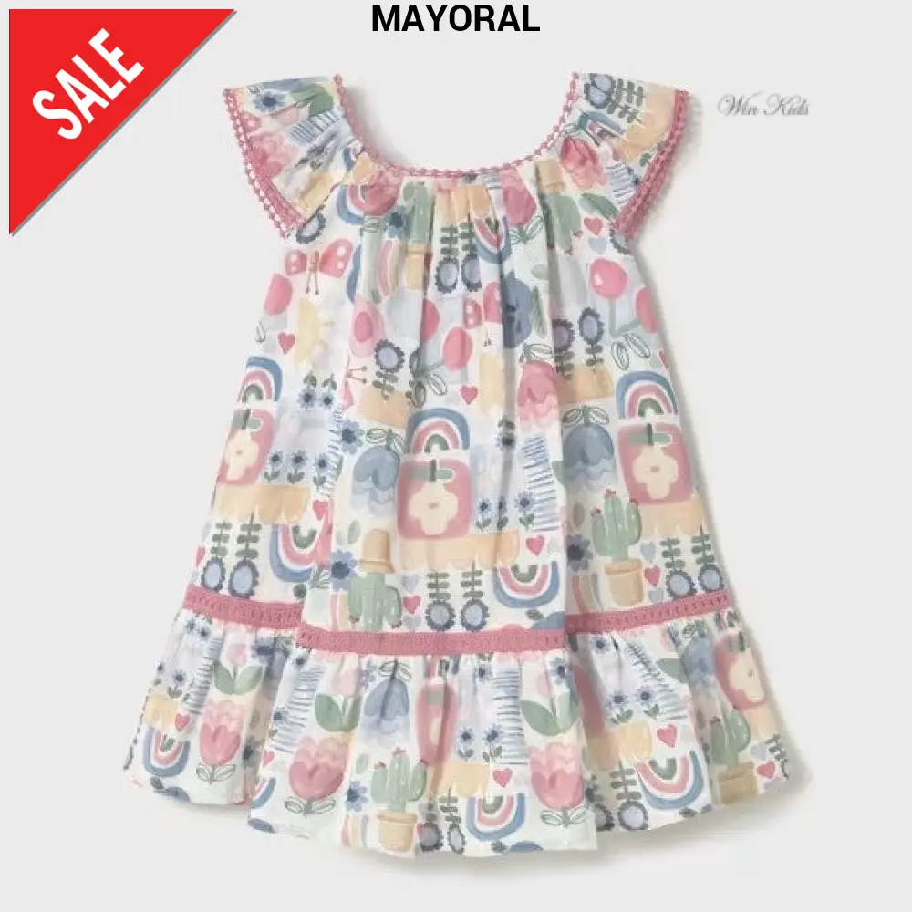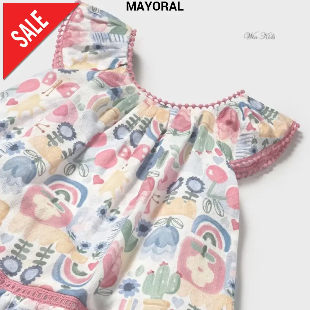 Abito MAYORAL in leggero cotone a fantasia con colletto rifinito , chiusura con zip.
